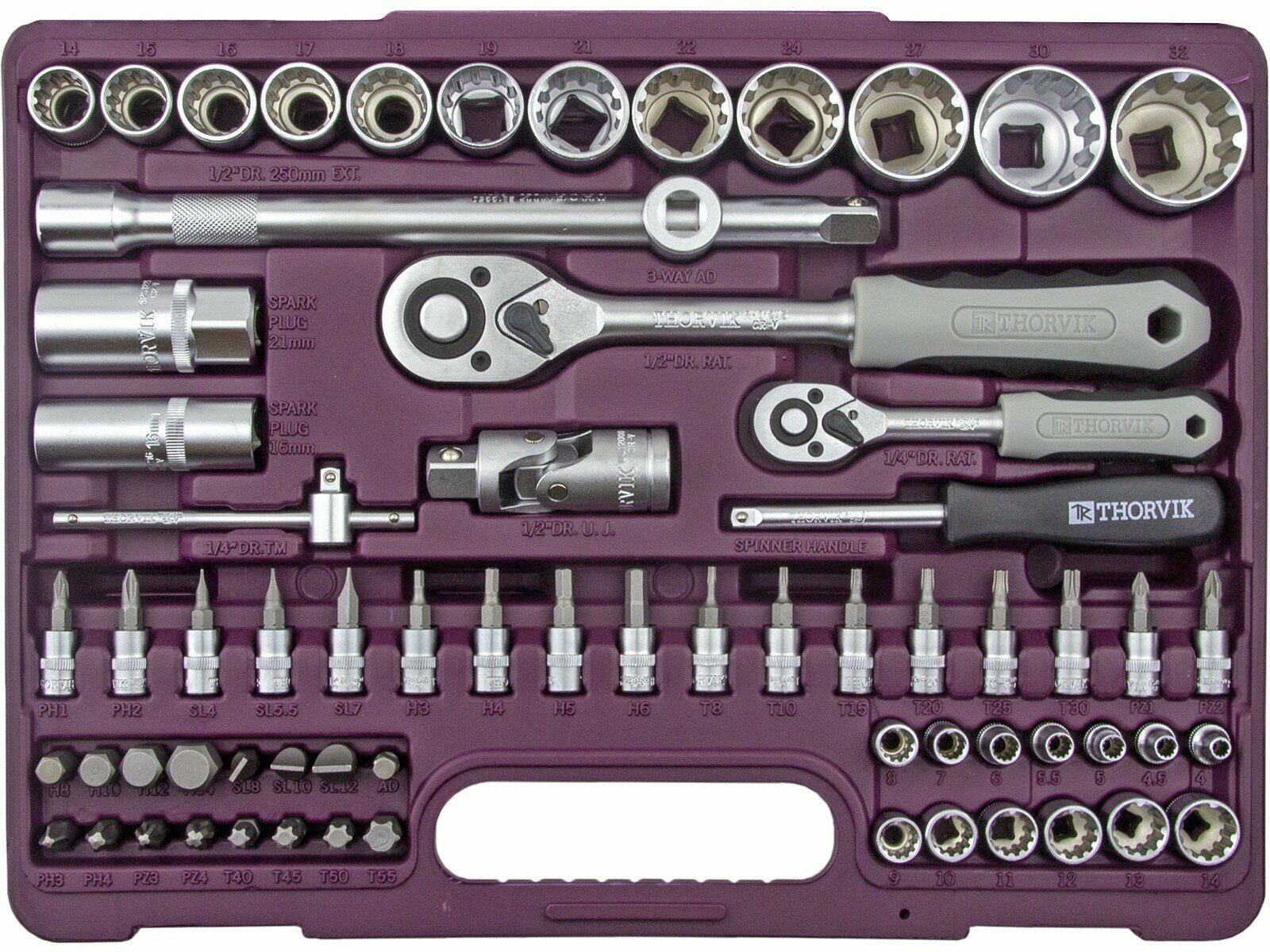 Инструмент thorvik 82 предмета 1/4-1/2 с головками multiprof