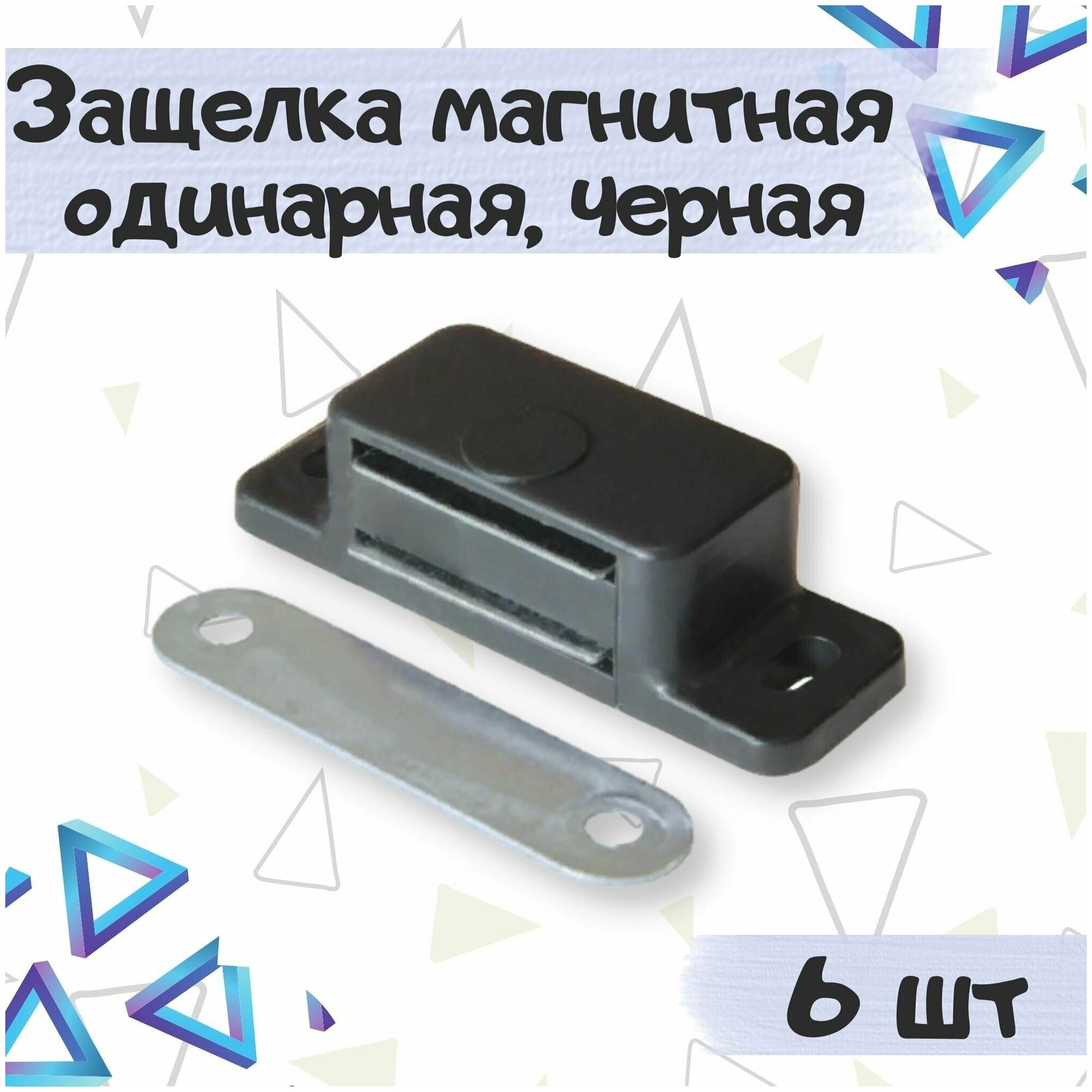Купить Защелка магнитная одинарная, мебельный магнит, цвет - черный, 6 шт.