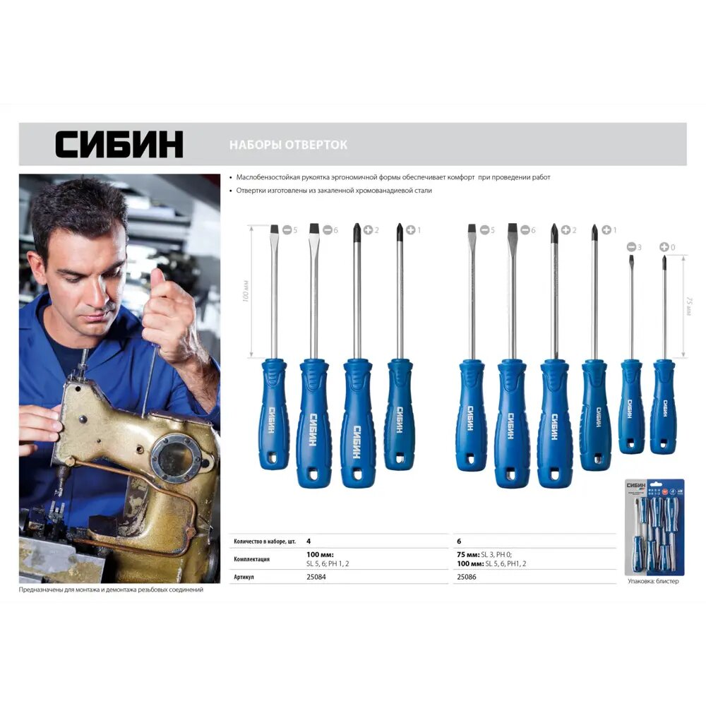 СИБИН Набор: Отвертки СИБИН 25086 с закаленным стержнем, маслобензостойкая рукоятка, в блистере, 6 предметов, ( 25086 )
