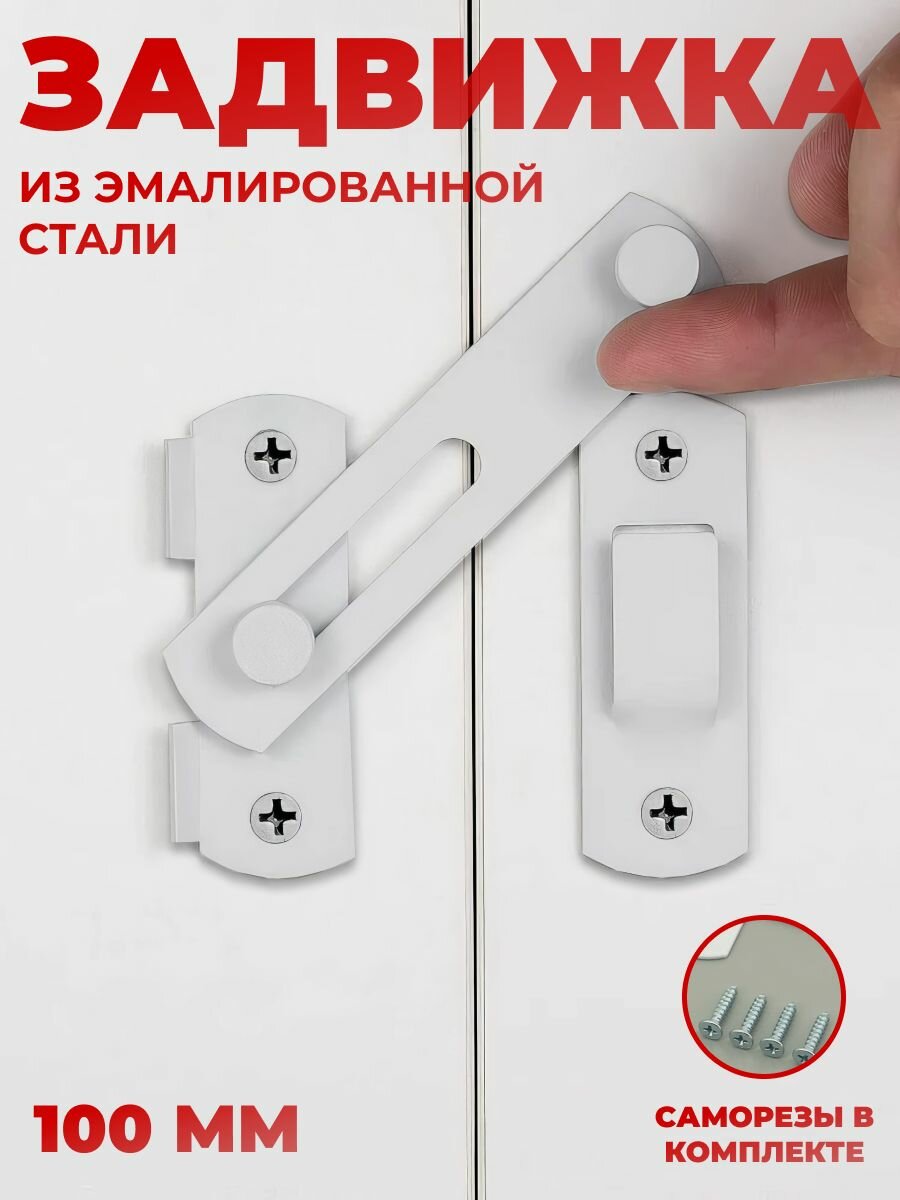 Шпингалет накладной белый / Засов дверной, комплект 2шт, 100мм