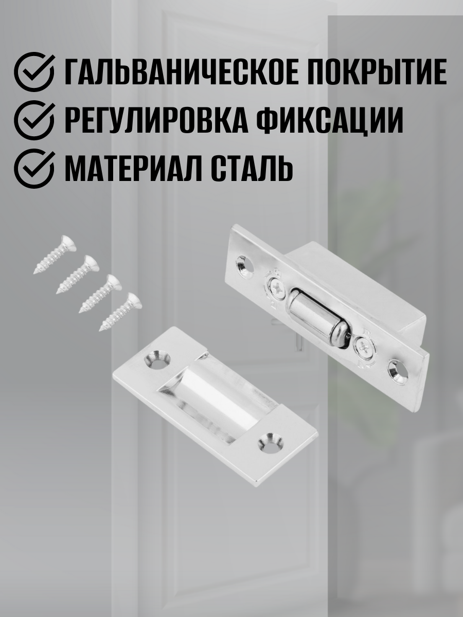 Защелка для межкомнатных дверей, шариковая, сталь, цвет хром