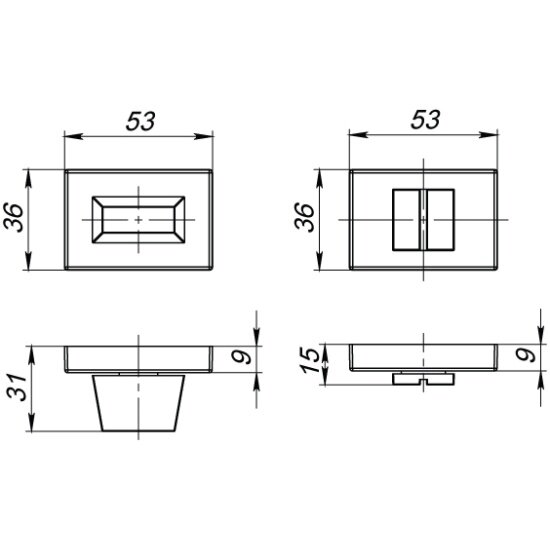 Ручка поворотная. Завертка сантехническая / межкомнатная, накладная Прямоугольник WC-BOLT BK6 UCS BL-26 Черный