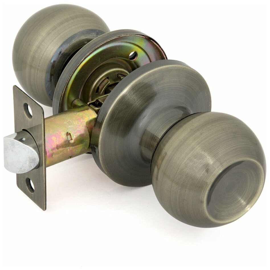 Ручка-защелка дверная межкомнатная (кноб) с фиксатором без ключей стандарт 607 BK AB бронза