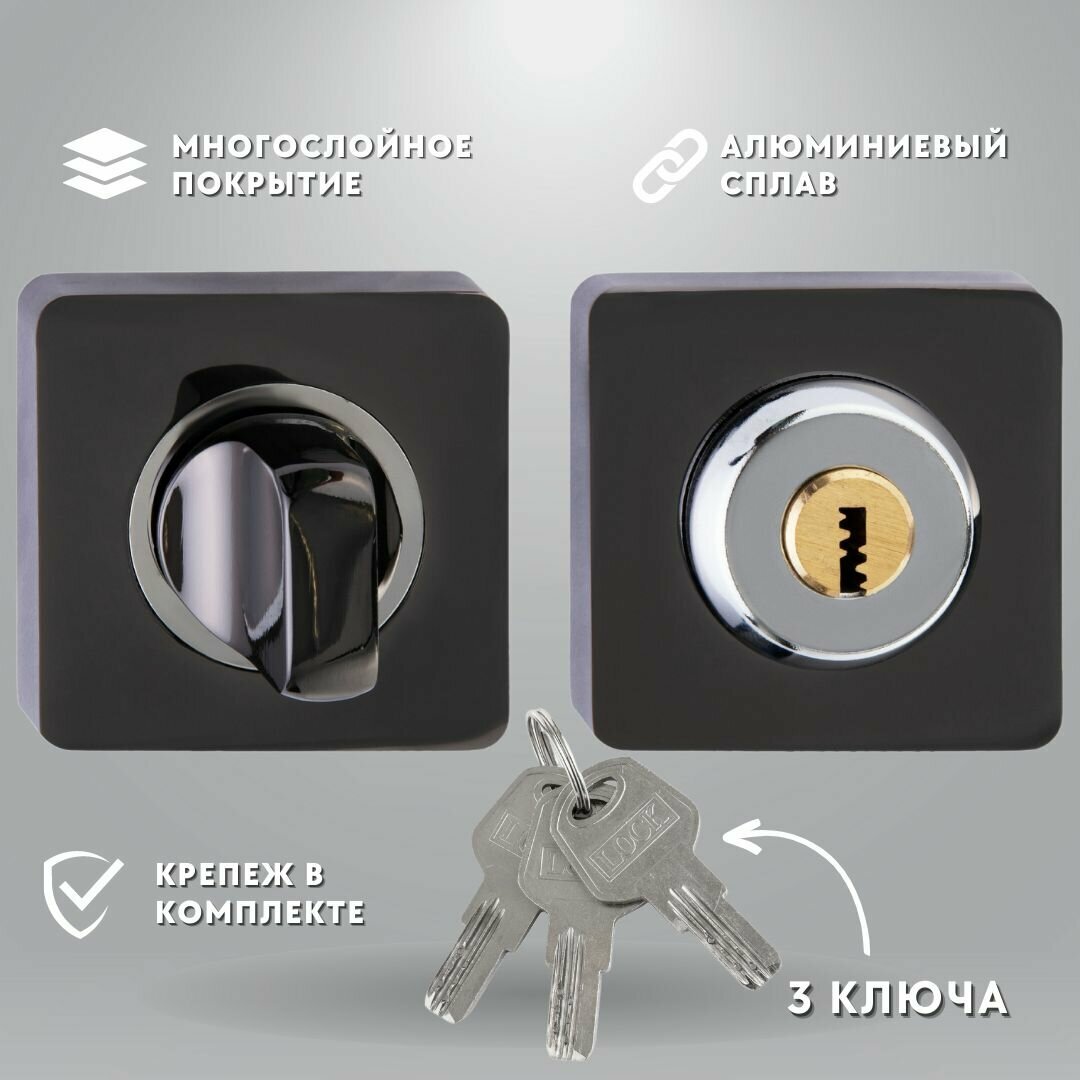 Завертка дверная с ключом, цвет черный никель, комплект интересное: