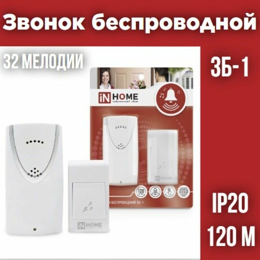 Купить Звонок беспроводной ЗБ-1 32 мелодии 120м с цифр. кодир. с кнопкой белый IN HOME