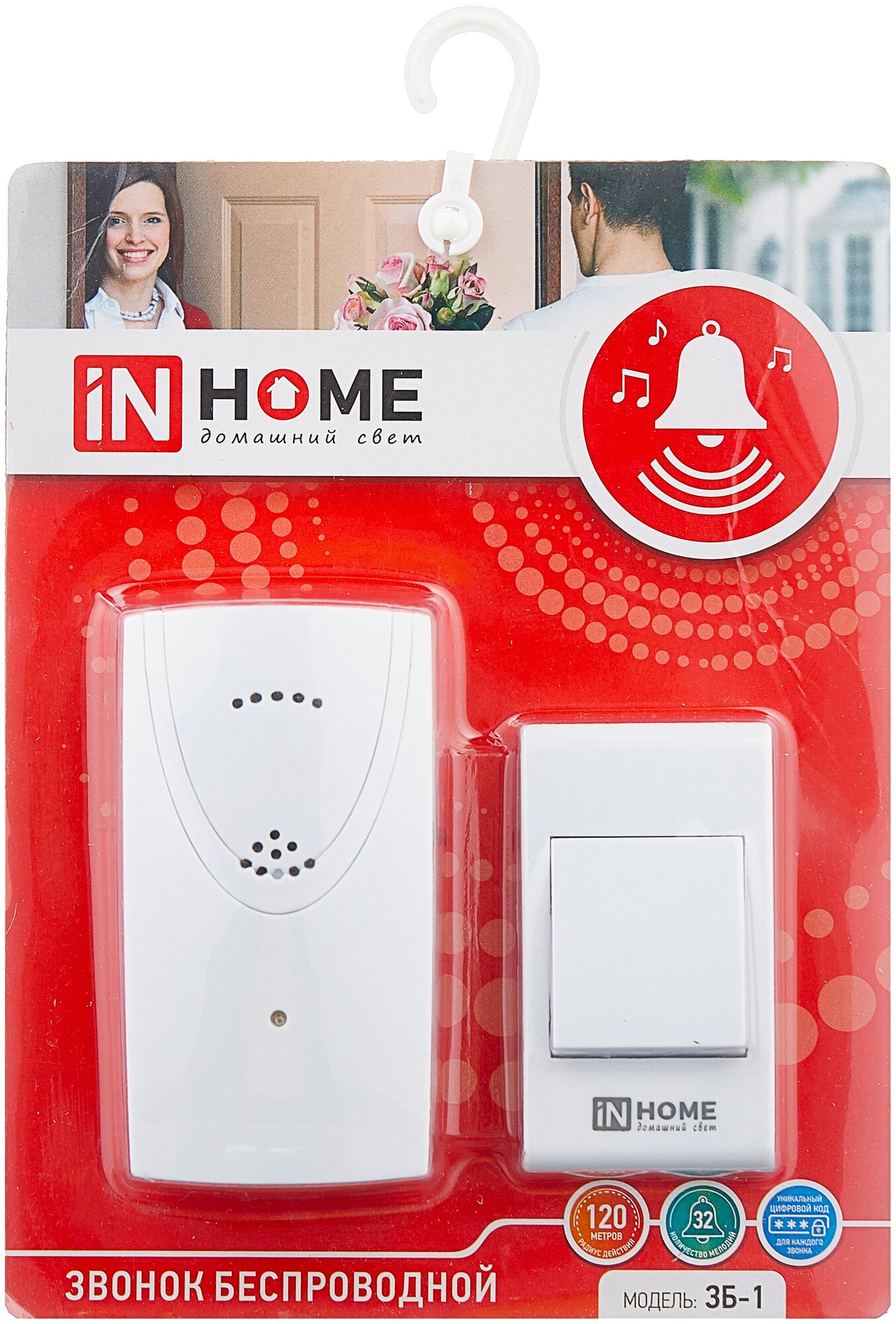 Звонок беспроводной ЗБ-1 32 мелодии 120м с цифр. кодир. с кнопкой белый IN HOME интересное: