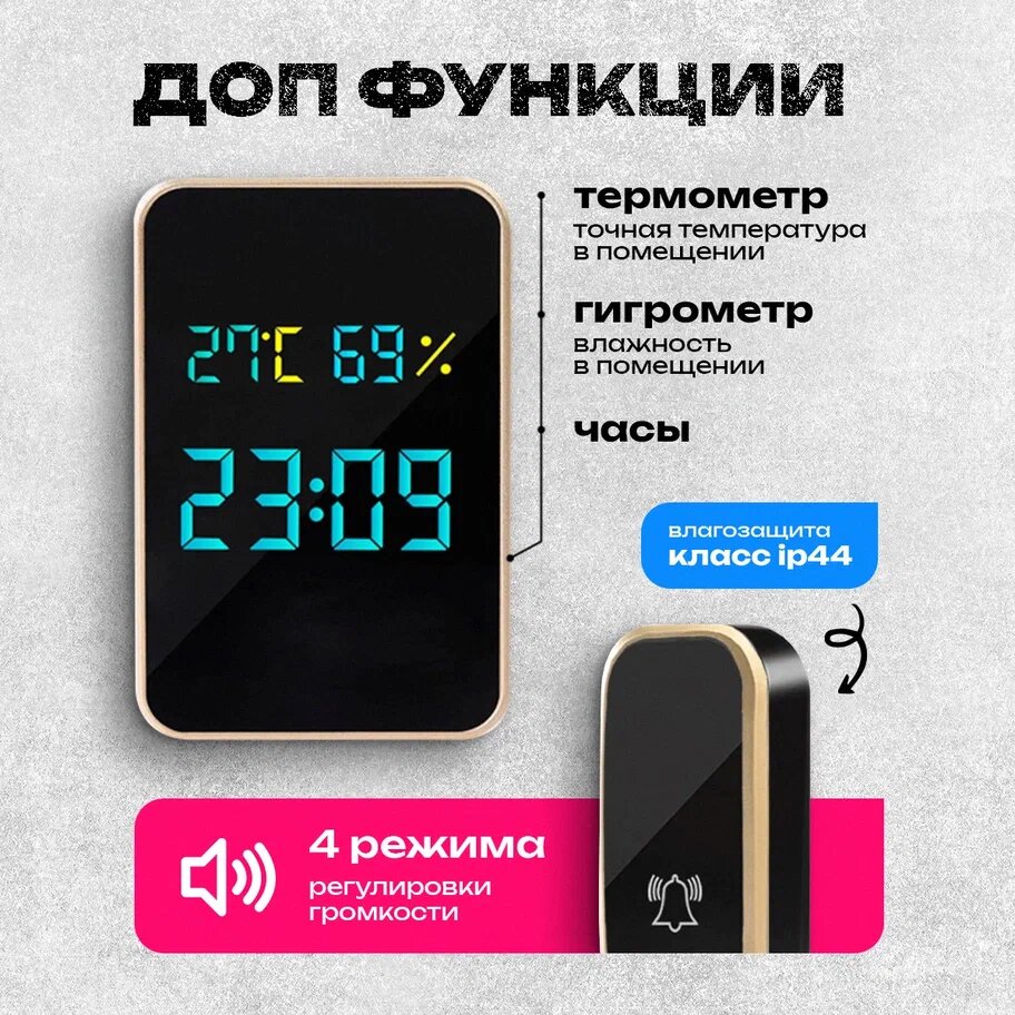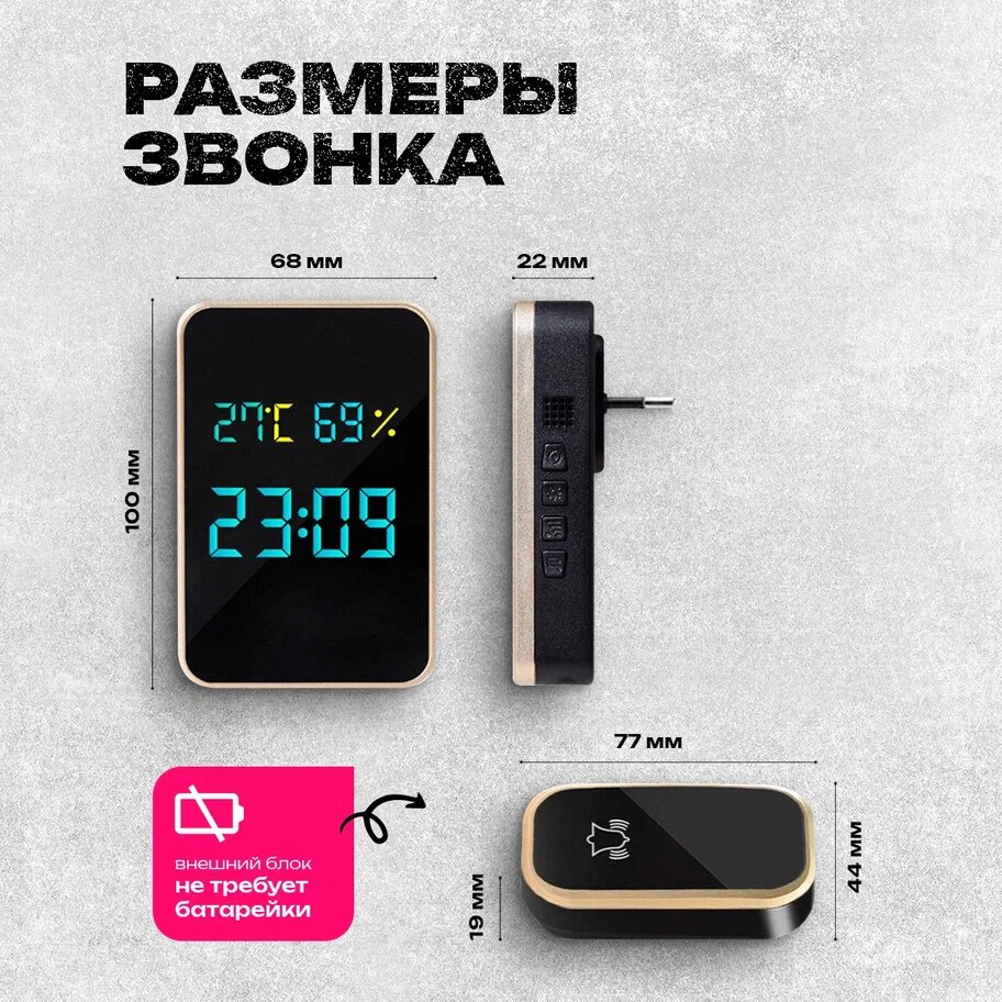 Беспроводной звонок, с подсветкой, влагозащищённый, радиус действия 30м, чёрный интересное:
