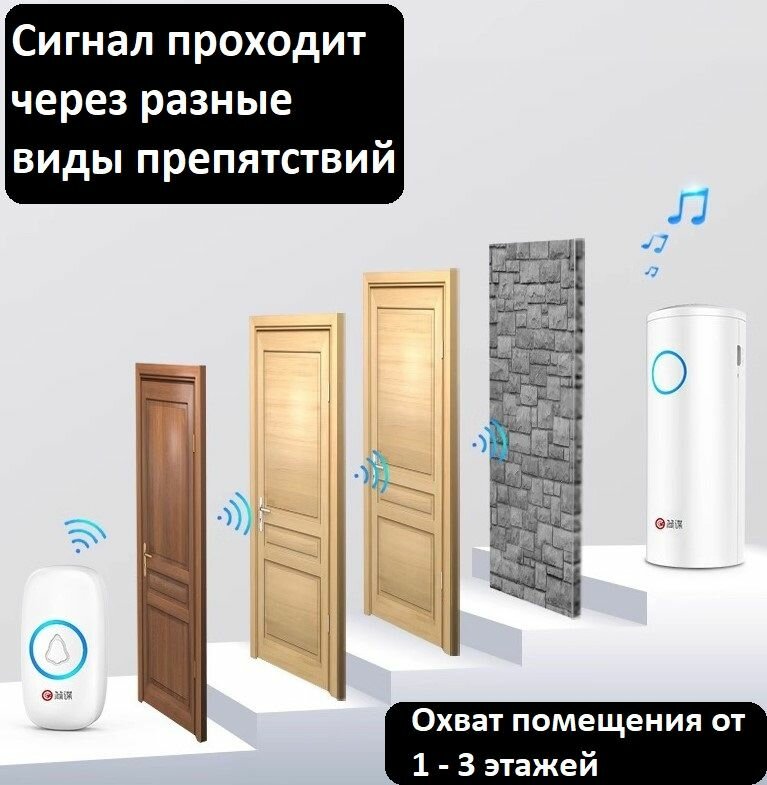 Дверной звонок беспроводной Smart Bell, 300 метров, 90дб, IPV4, для улицы/ для помещений, 39 мелодий, сменная батарея интересное: