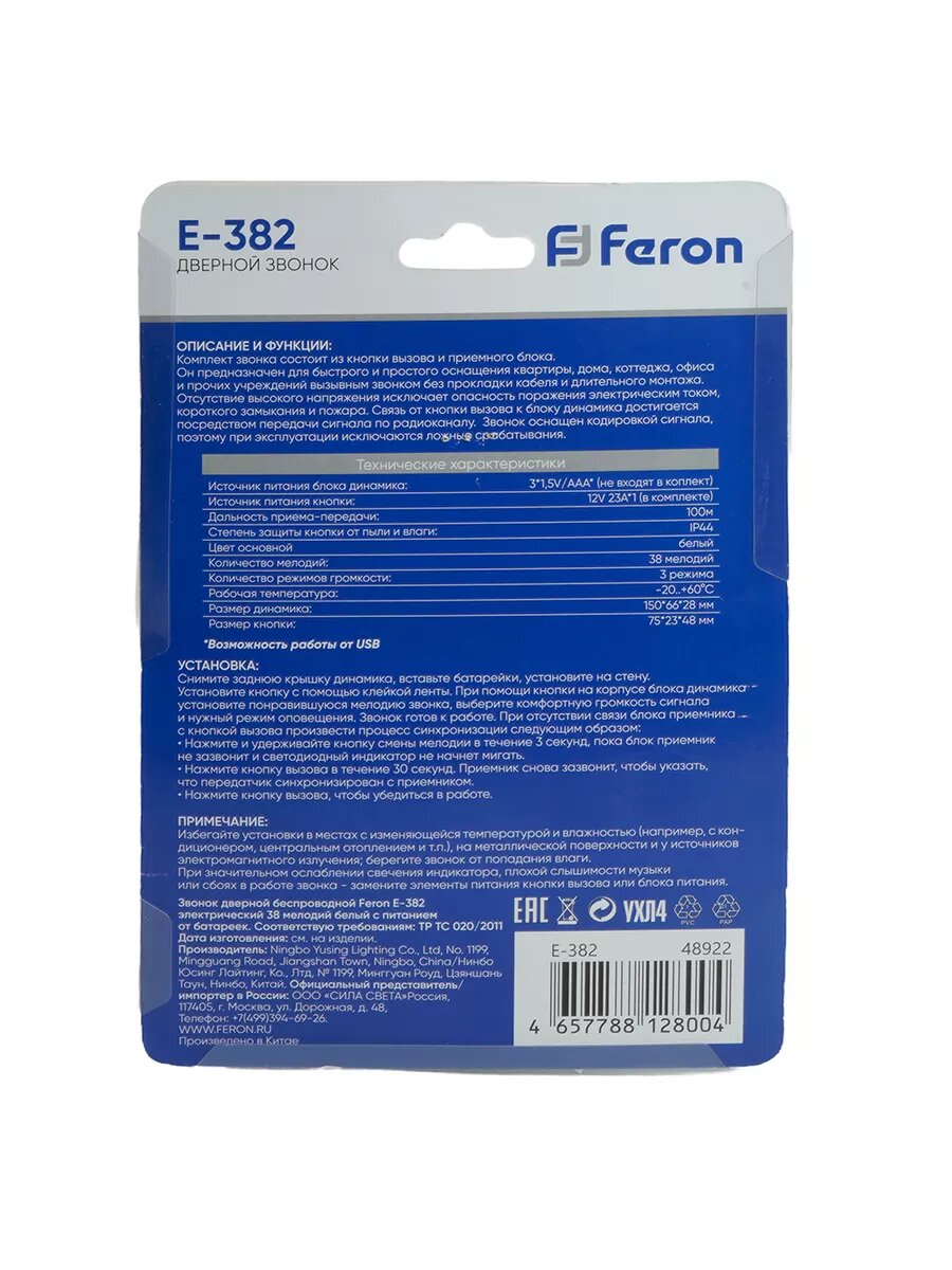Ниже Вы можете прочитать отзывы на Звонок беспроводной дверной E-382 38 мелодий, ознакомится с подробными характеристиками, посмотреть интересные обзоры и фотографии на Звонок беспроводной дверной E-382 38 мелодий.