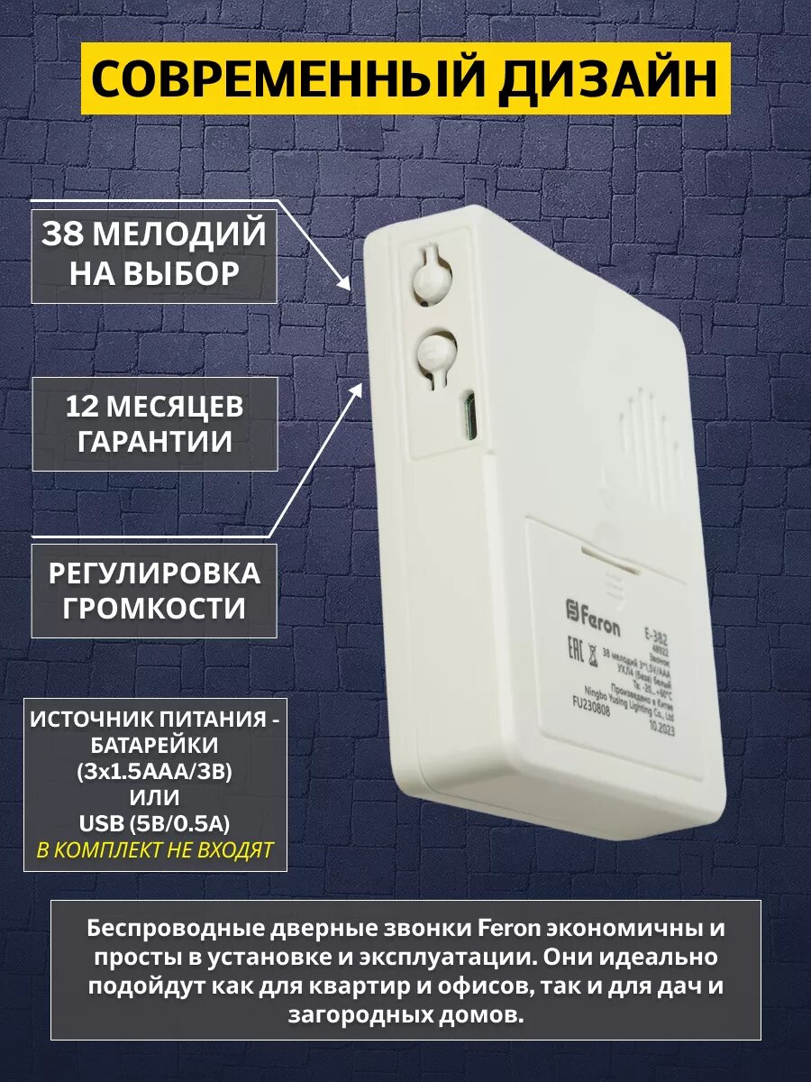 Звонок беспроводной дверной E-382 38 мелодий интересное:
