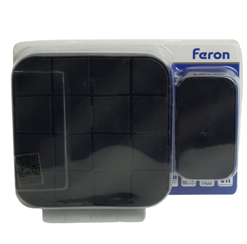 Купить Звонок дверной беспроводной Feron E-378 Электрический 10 мелодий черный с питанием от батареек