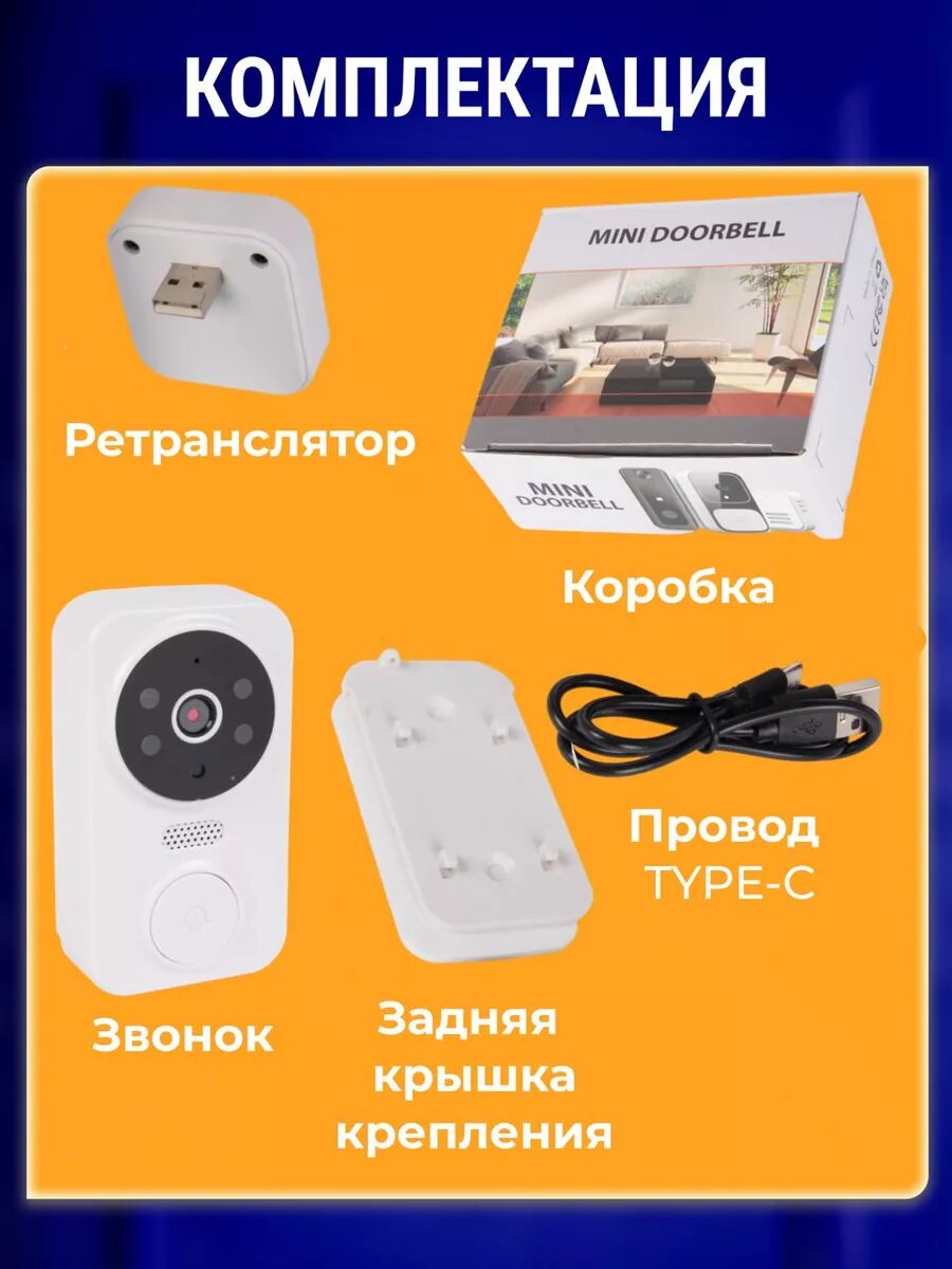 Дверной звонок визуальный домофон / Умный видеозвонок с 2-хсторонней связью и удаленным управлением белый интересное: