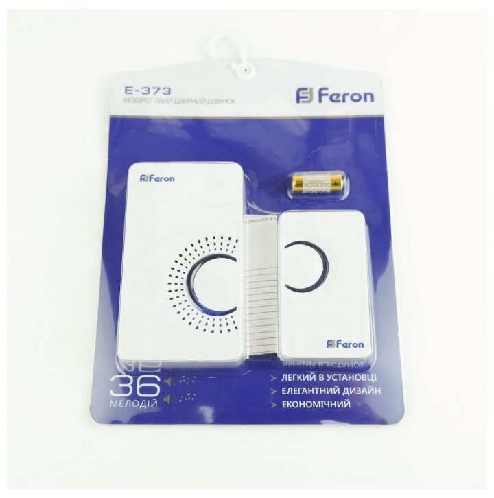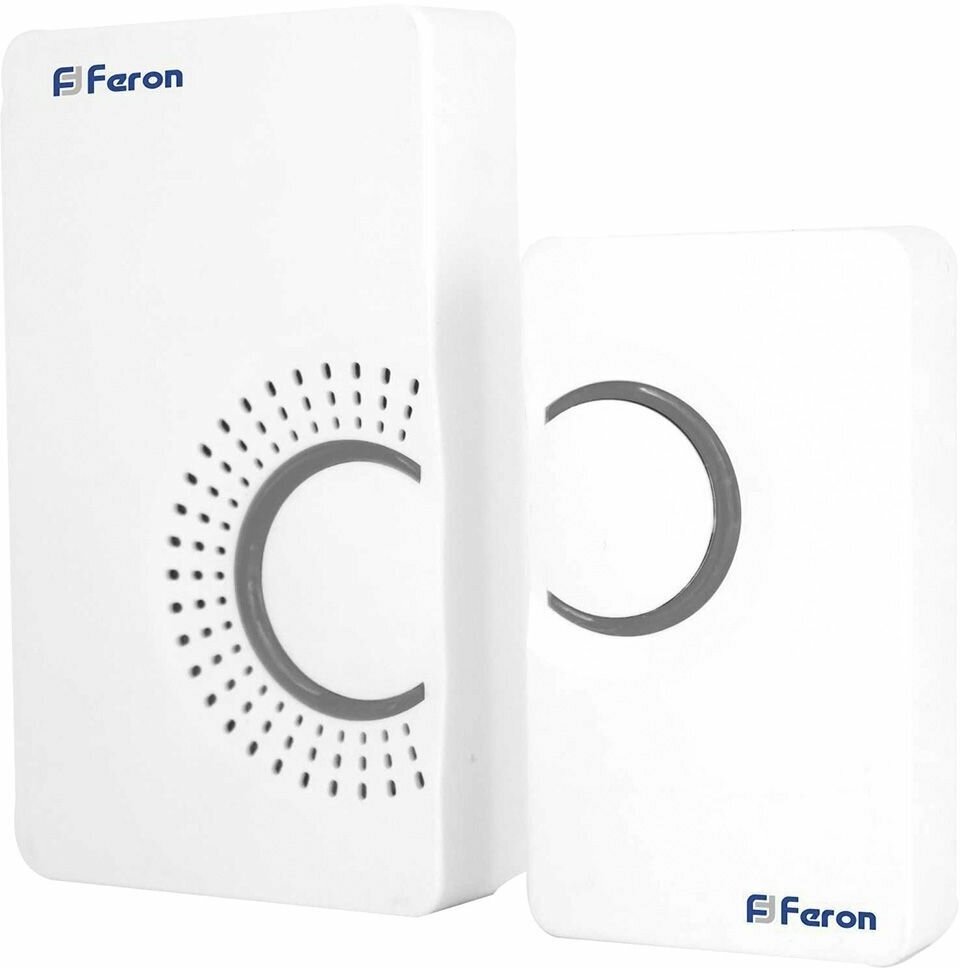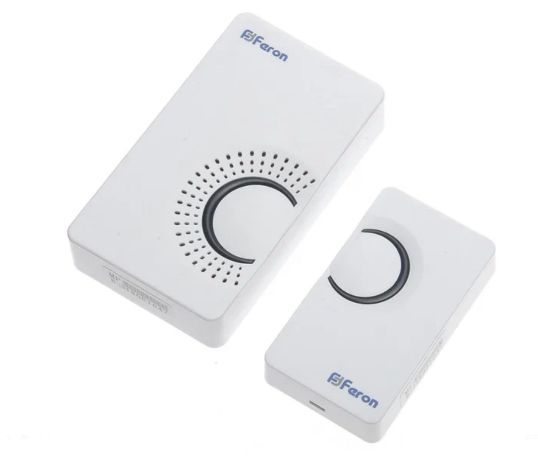 Звонок дверной беспроводной Feron E-373 Электрический 36 мелодий белый серый с питанием от батареек 23686 fr_23686 интересное: