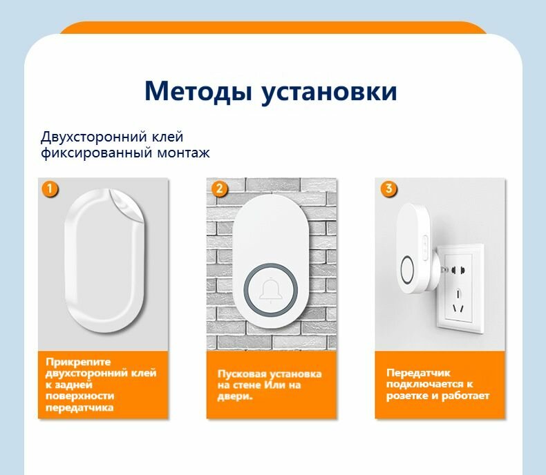 Беспроводной дверной звонок, водонепроницаемость IP44, дальность передачи 200 метров интересное: