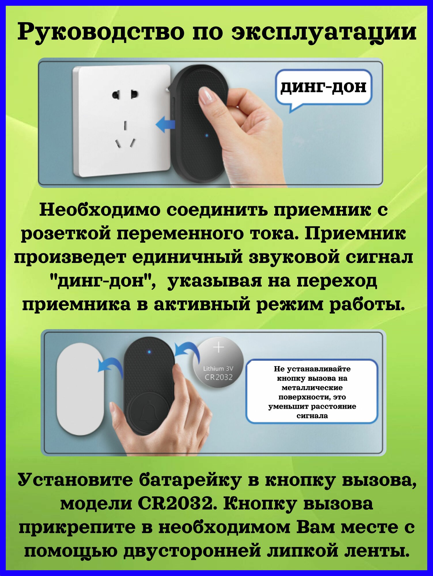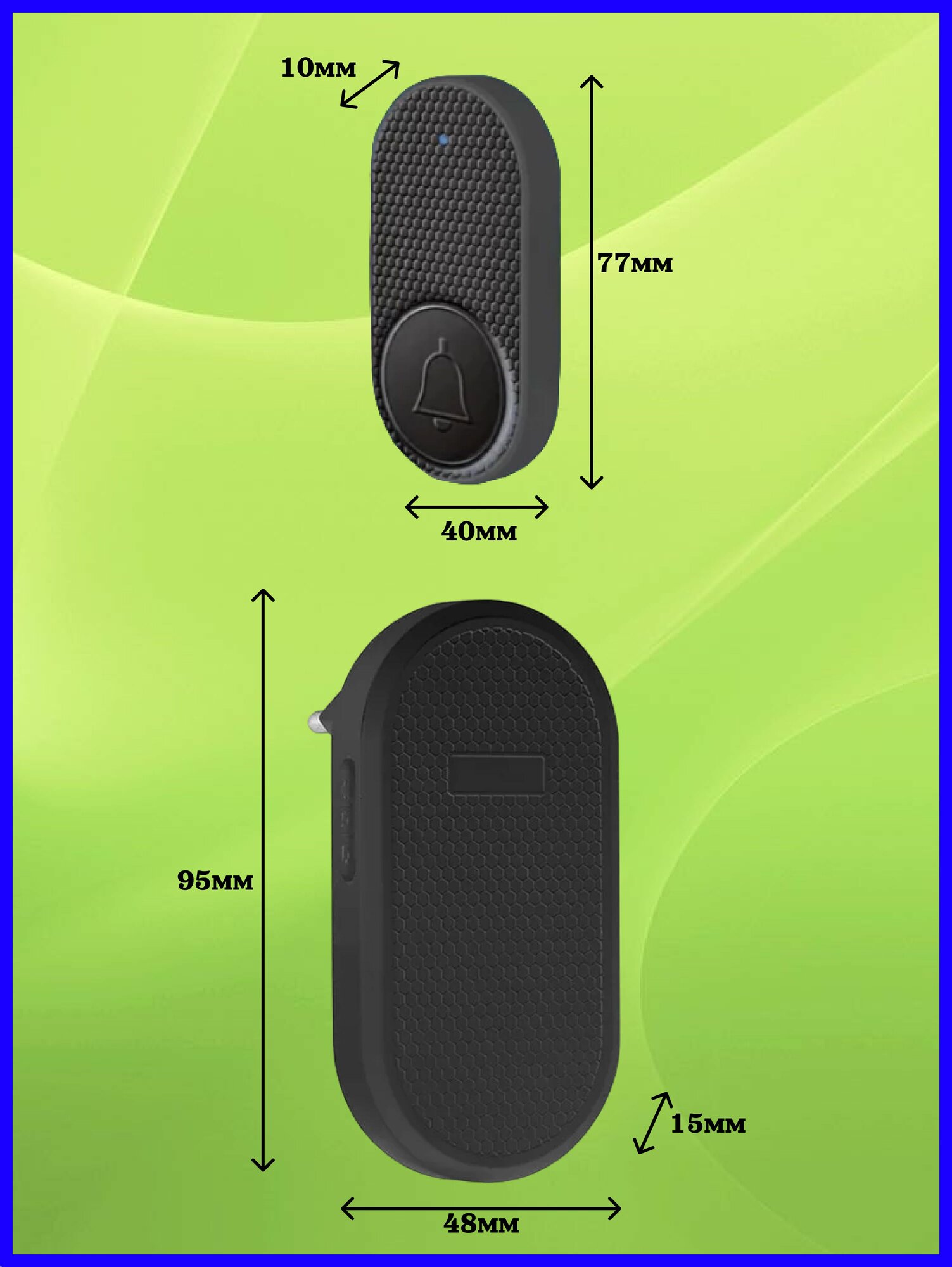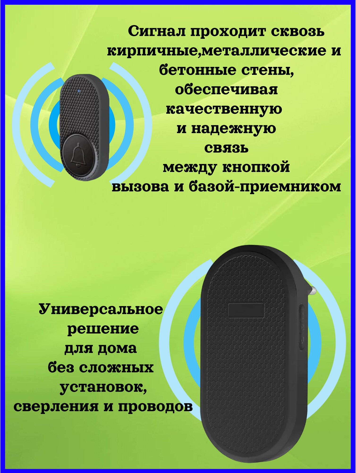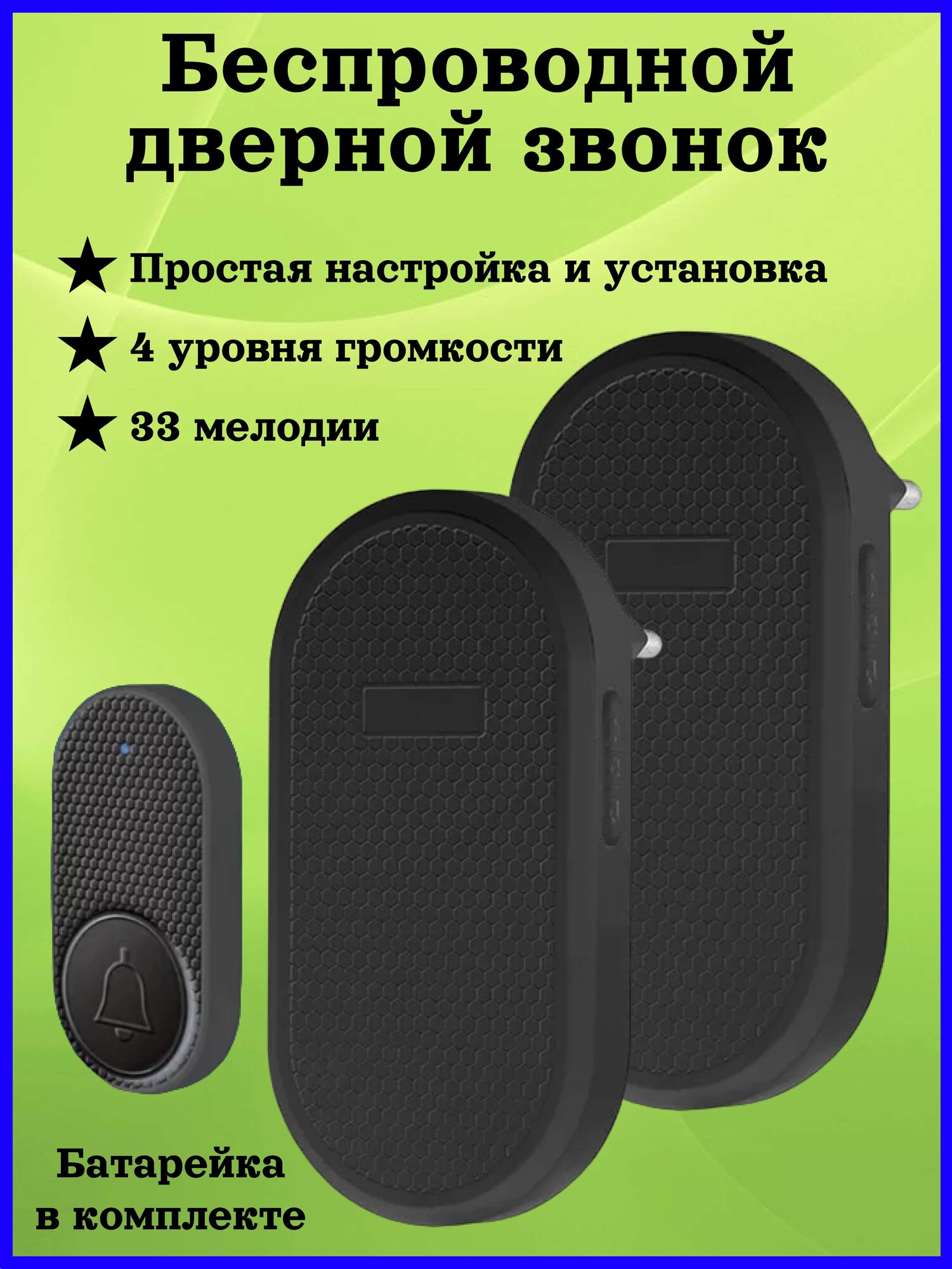 Звонок беспроводной дверной 2 приемника 1 кнопка вызова для дома, дачи, квартиры, калитки.