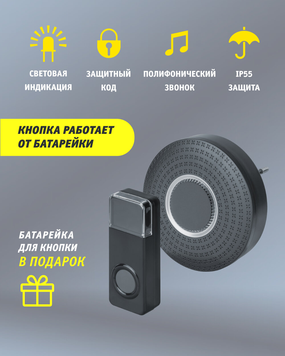 Звонок с кнопкой EKF DBB-A-003 электронный беспроводной (количество мелодий: 36)