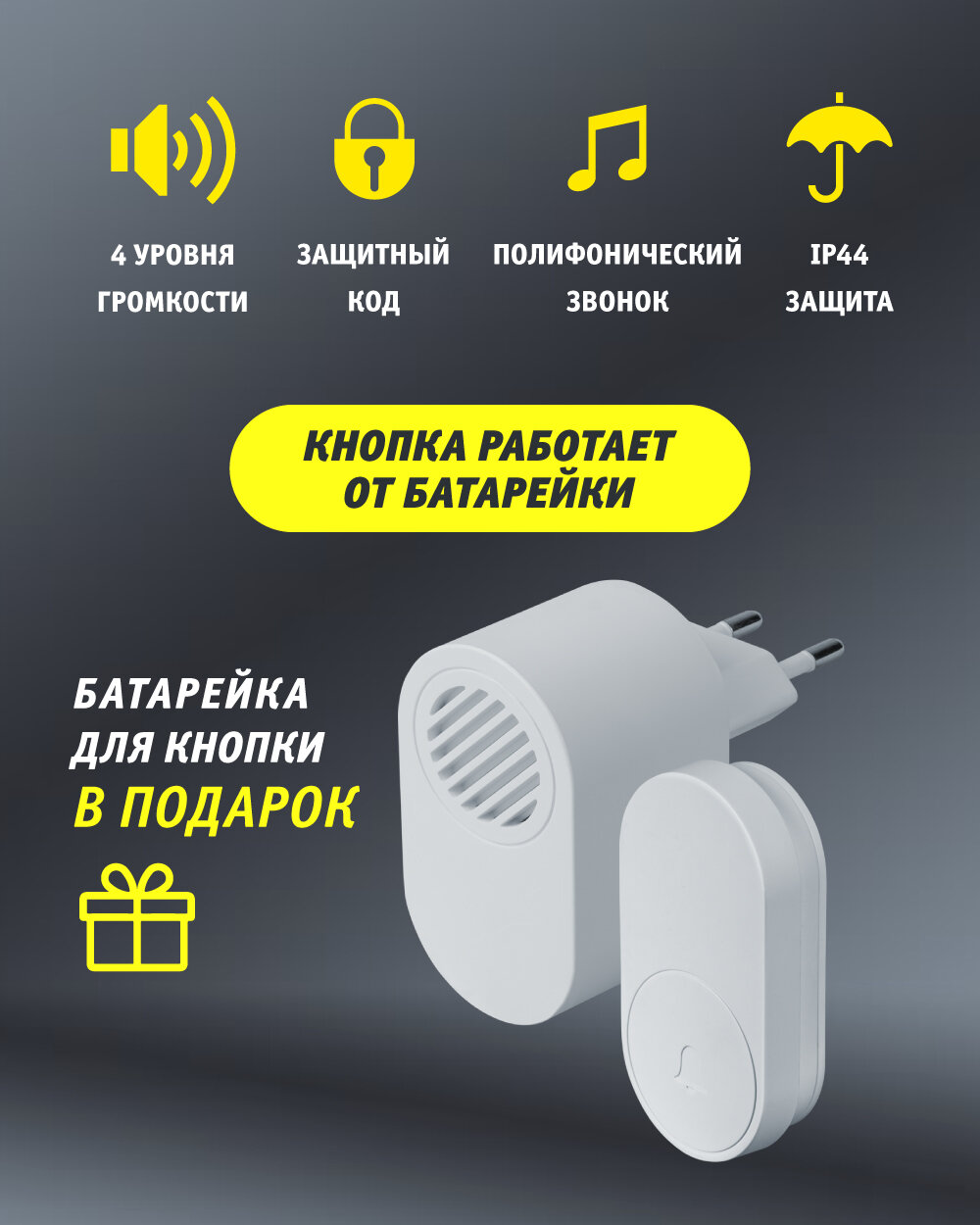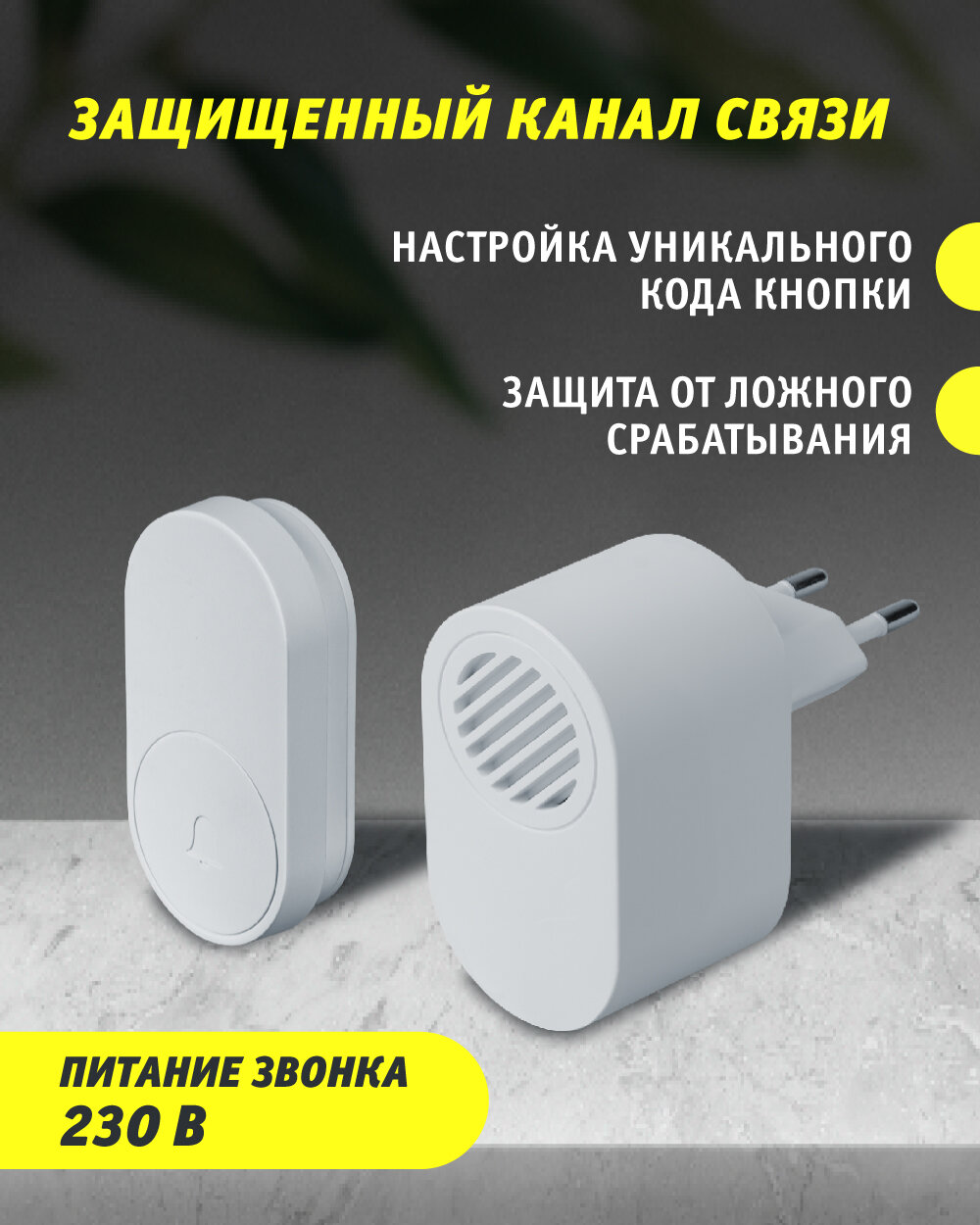 Дверной звонок беспроводной Джетт 202 (80 м), 36 мелодии, 220В