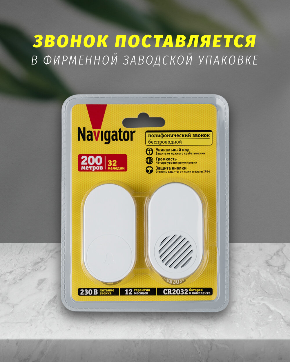 Звонок дверной беспроводной цифровой Navigator 95 214, белый