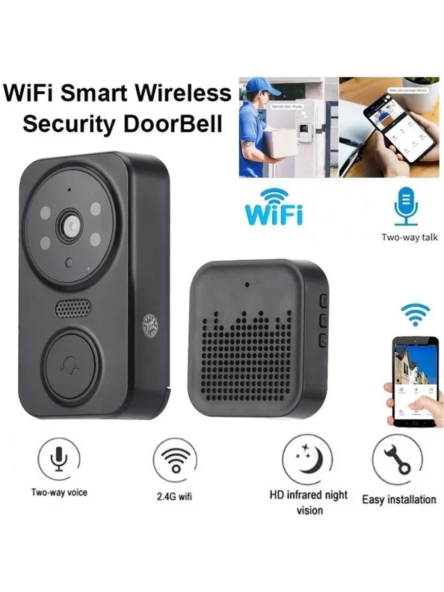 Дверной звонок M8, беспроводной, с камерой, с микрофоном, черный интересное: