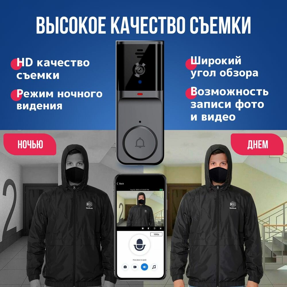 Звонок беспроводной на дверь в квартиру с камерой/ Видеозвонок дверной с двусторонней аудиосвязью интересное:
