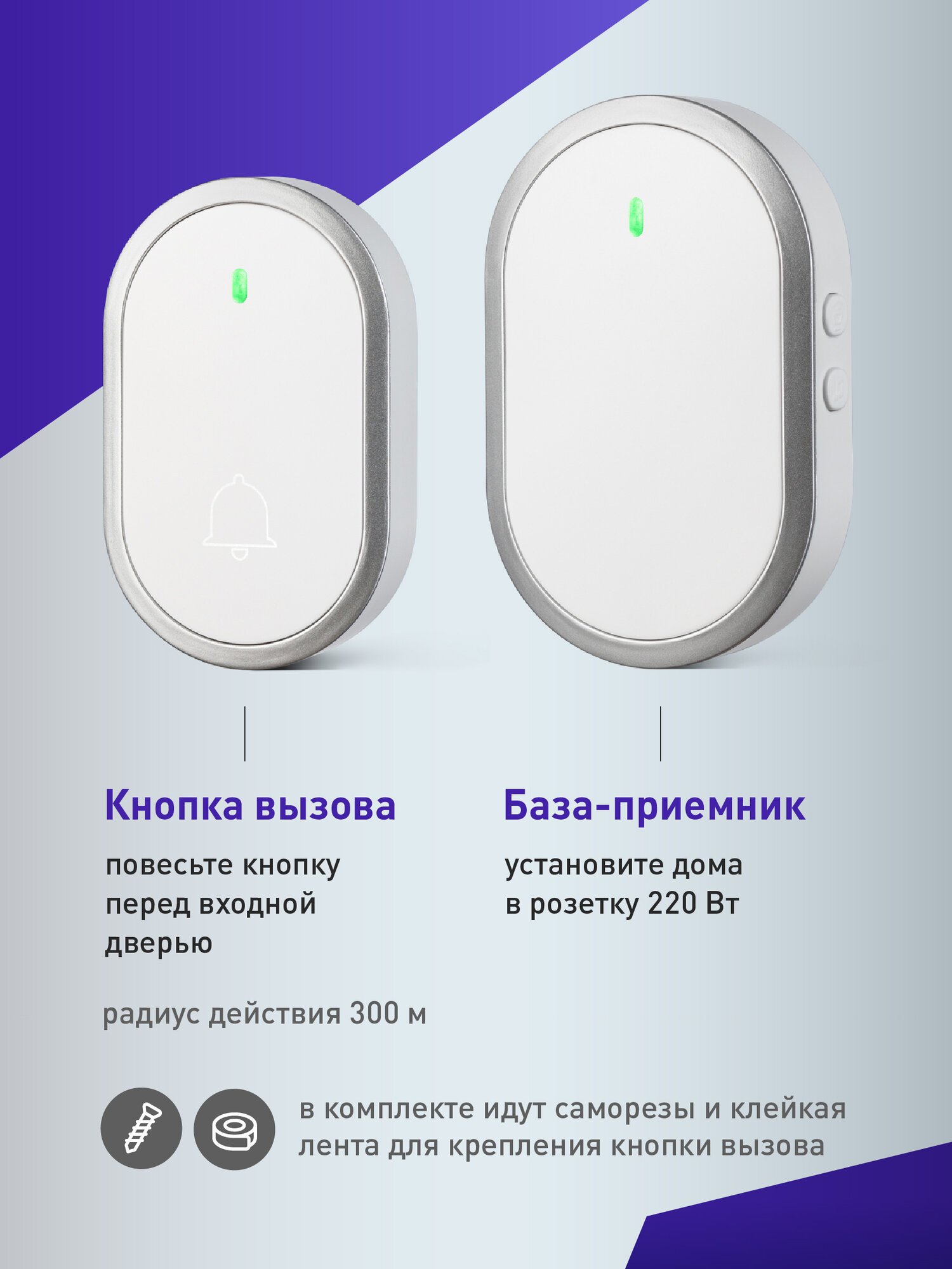 Дверной звонок беспроводной Джетт 202 (80 м), 36 мелодии, 220В