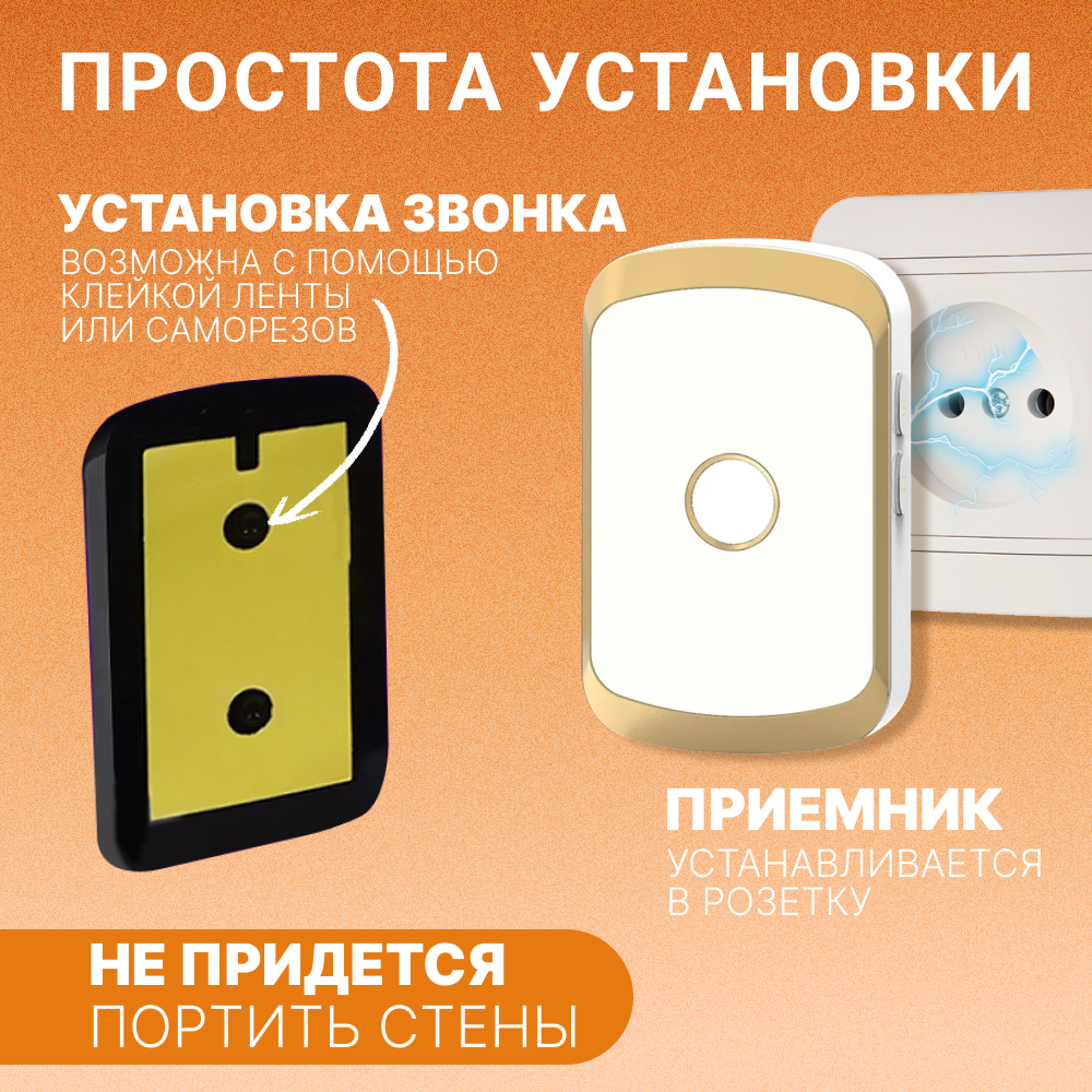 Беспроводной звонок Орбита 200 метров, 52 мелодии, 220B, 100дБ