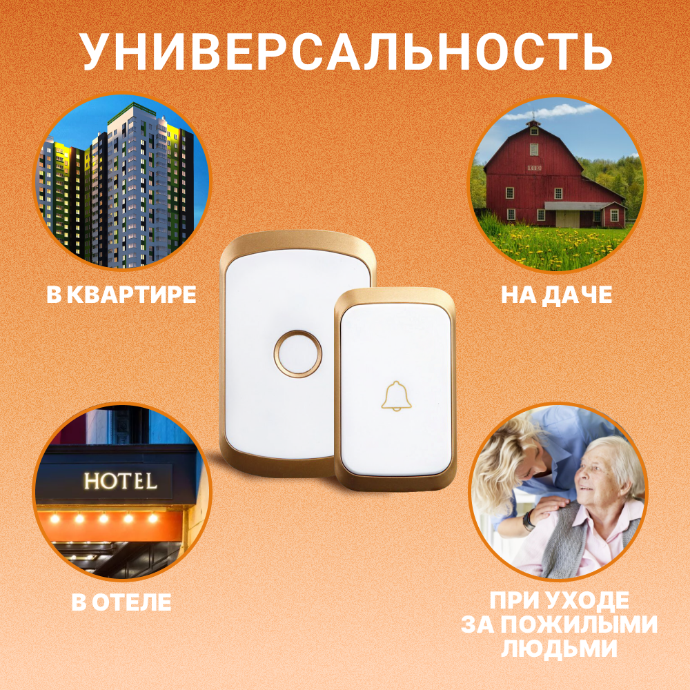 Звонок дверной Samak, беспроводная кнопка, с музыкой, водонепроницаемый, радиус 300м интересное: