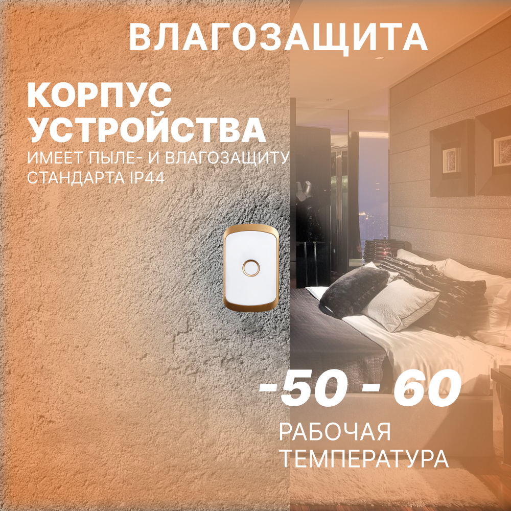 Звонок ЭРА BIONIC Champagne б/проводной рег. громк, 6 мел, кнопка IP44 (10/60/240) =5055398690697=