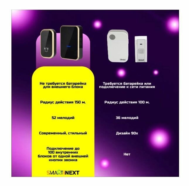 Ниже Вы можете прочитать отзывы на Звонок дверной кинетический SmartiNext , черно-золотистый SN-T193-BG, ознакомится с подробными характеристиками, посмотреть интересные обзоры и фотографии на Звонок дверной кинетический SmartiNext , черно-золотистый SN-T193-BG.