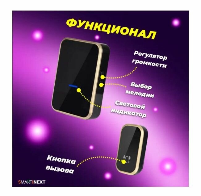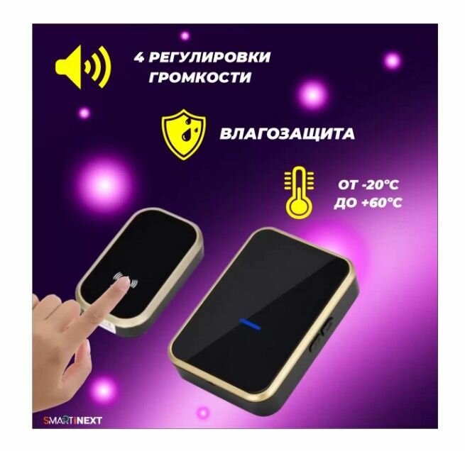 Звонок дверной кинетический SmartiNext , черно-золотистый SN-T193-BG интересное: