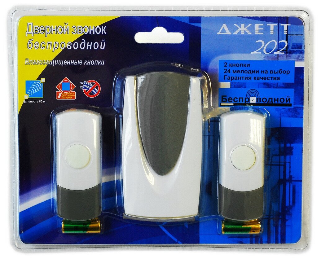 Беспроводной дверной звонок c цифровым кодированием Джетт 202 ( 80 м), 220В, 24 мелодии (2 кнопки) интересное: