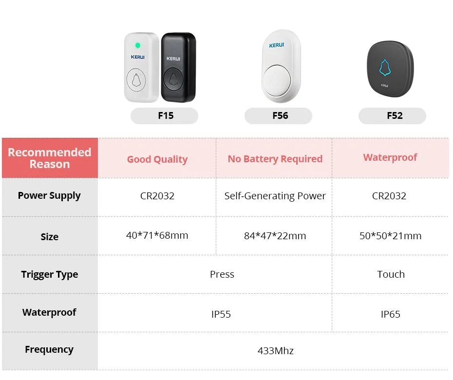 KERUI Беспроводная сенсорная кнопка дверного звонка SOS, F52 Black интересное: