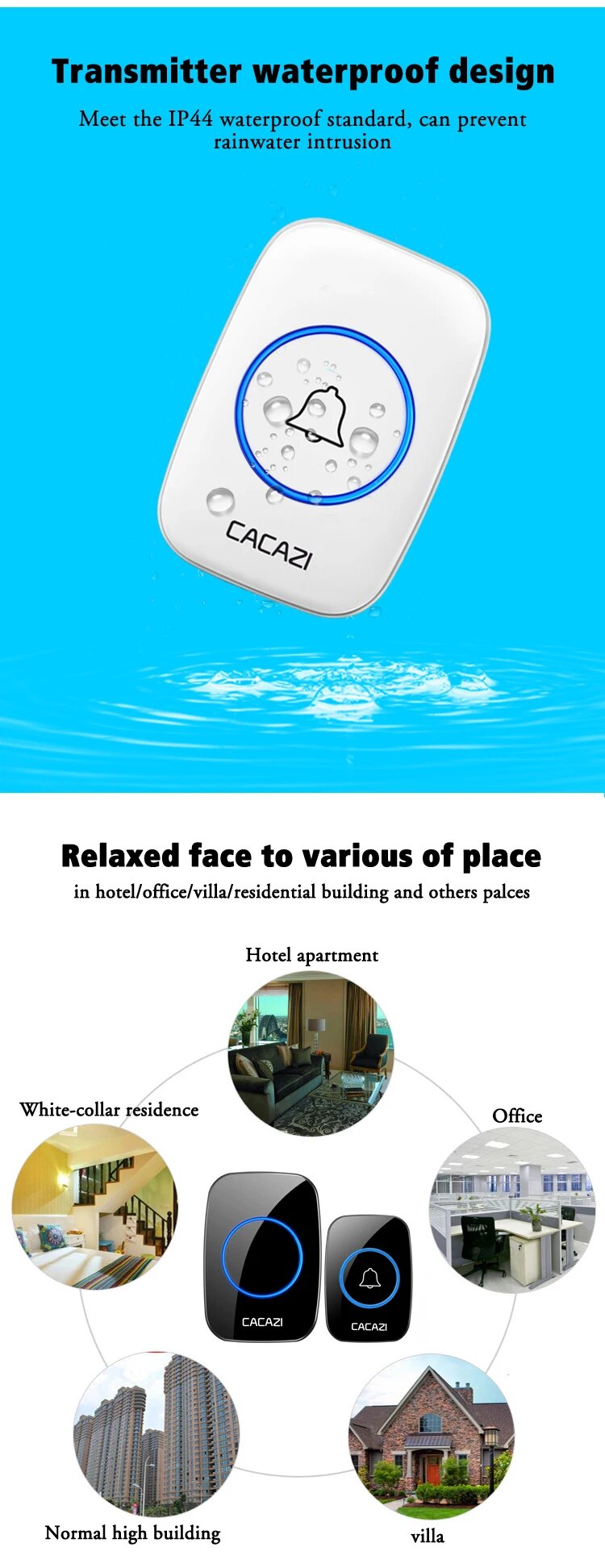Беспроводной дверной звонок CACAZI, 36 мелодий, only a Transmitter интересное: