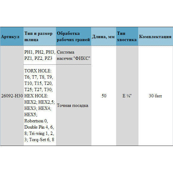 Набор кованых бит ЗУБР 30 шт. ( 26092-H30 )