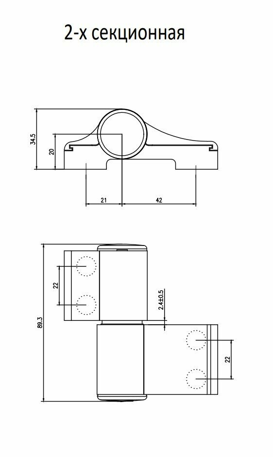 Петля дверная DORMA 03-AL/2, для алюминиевых дверей, холодного профиля, 2-х секционная, серый