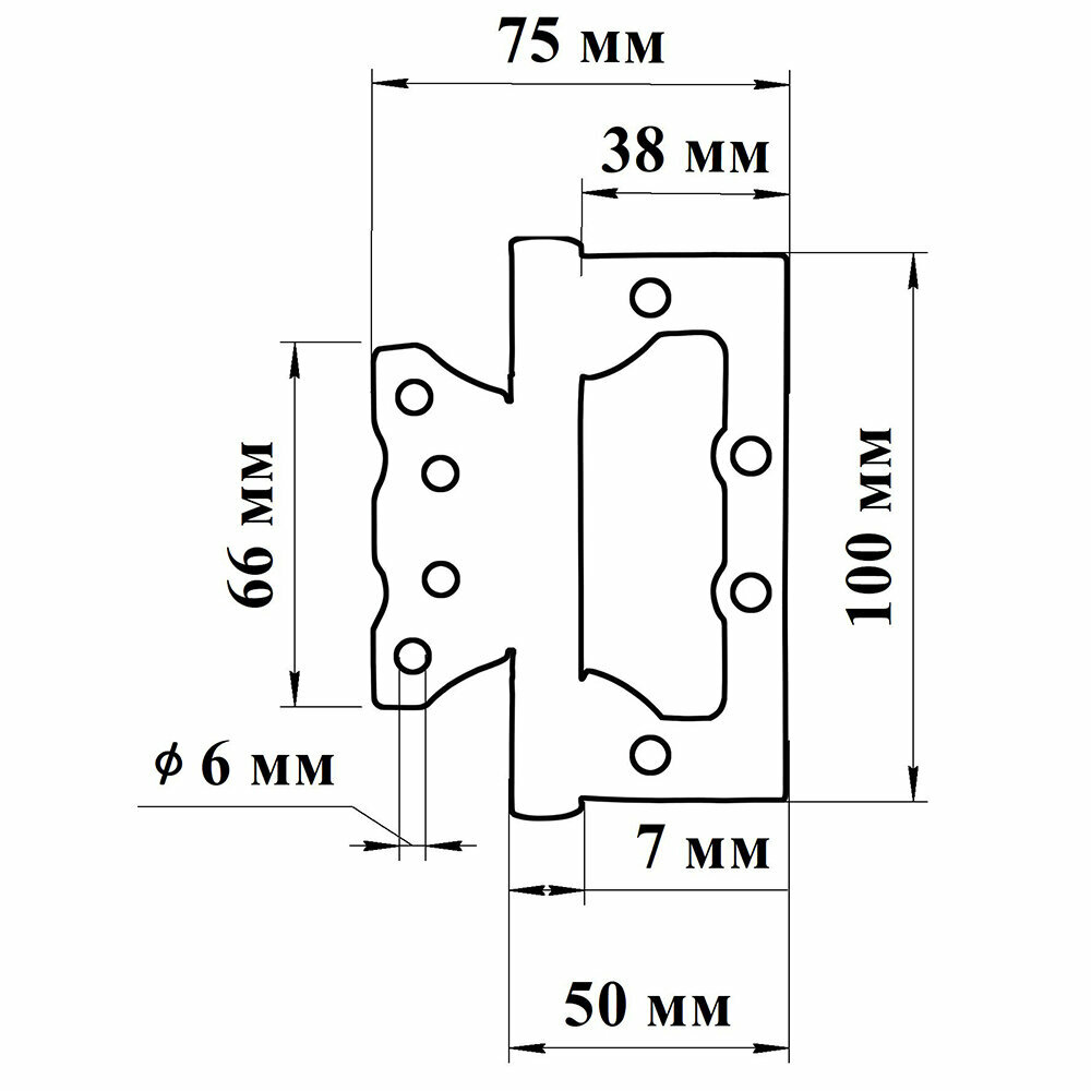 Петля универсальная накладная без врезки, 100*75*2,5- В2, СР хром , (сталь)