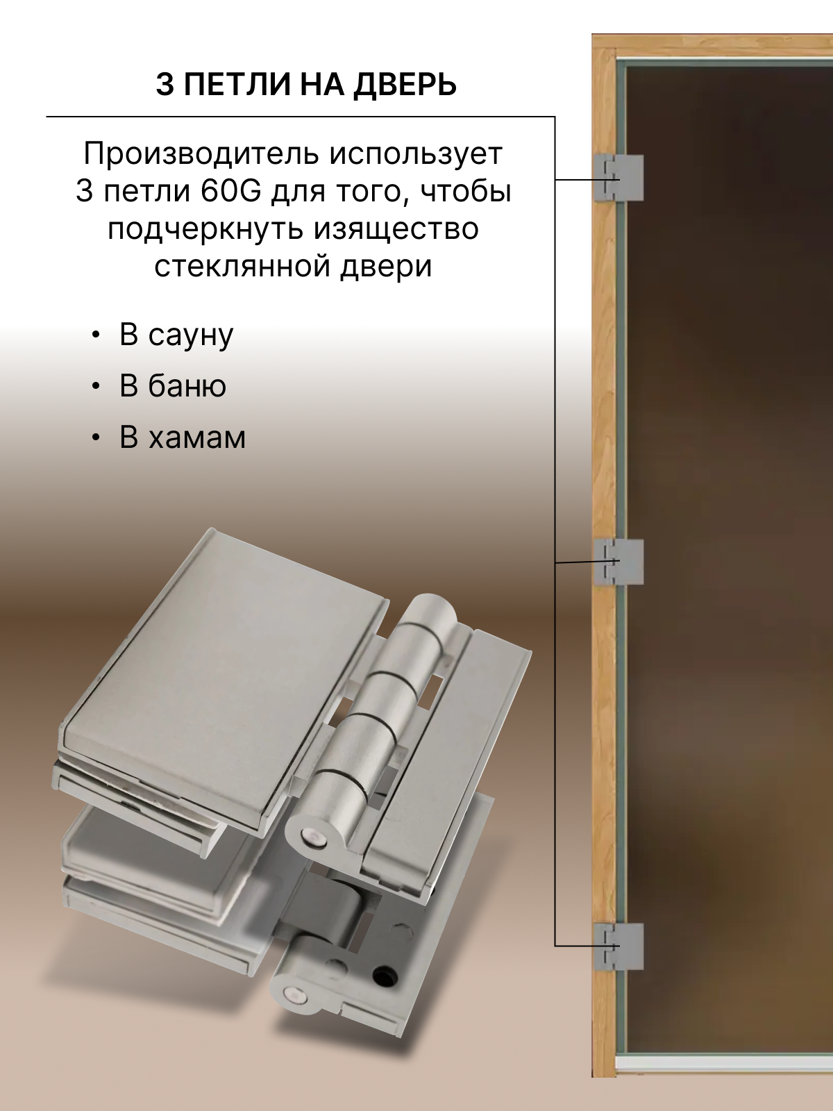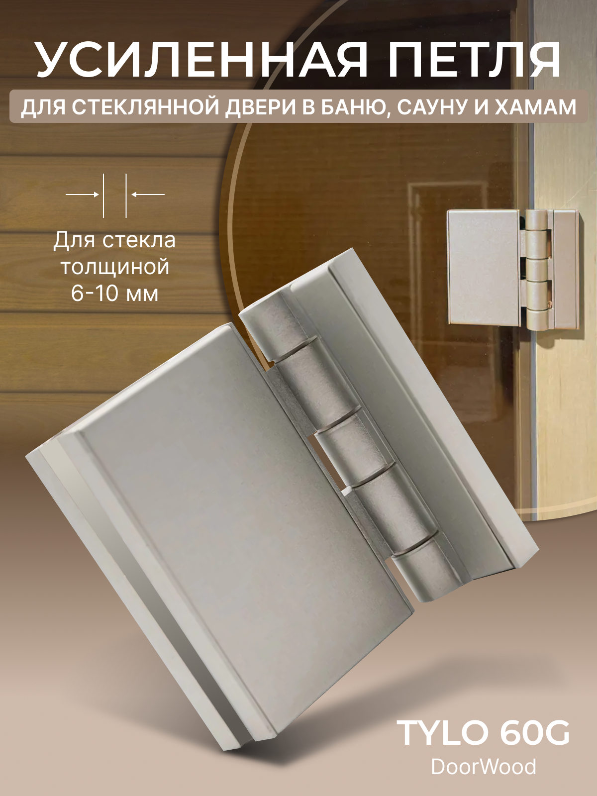 Усиленная петля DoorWood G60 для стеклянной двери в бане, сауне и хаммаме интересное: