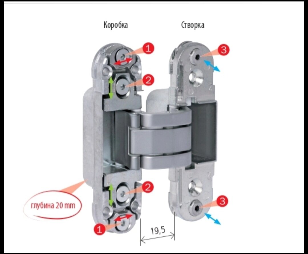 Петли скрытой установки 1 шт для правого открывания U3D4200R AB правая (Architect 3D-ACH 40) бронза 40 кг 32505