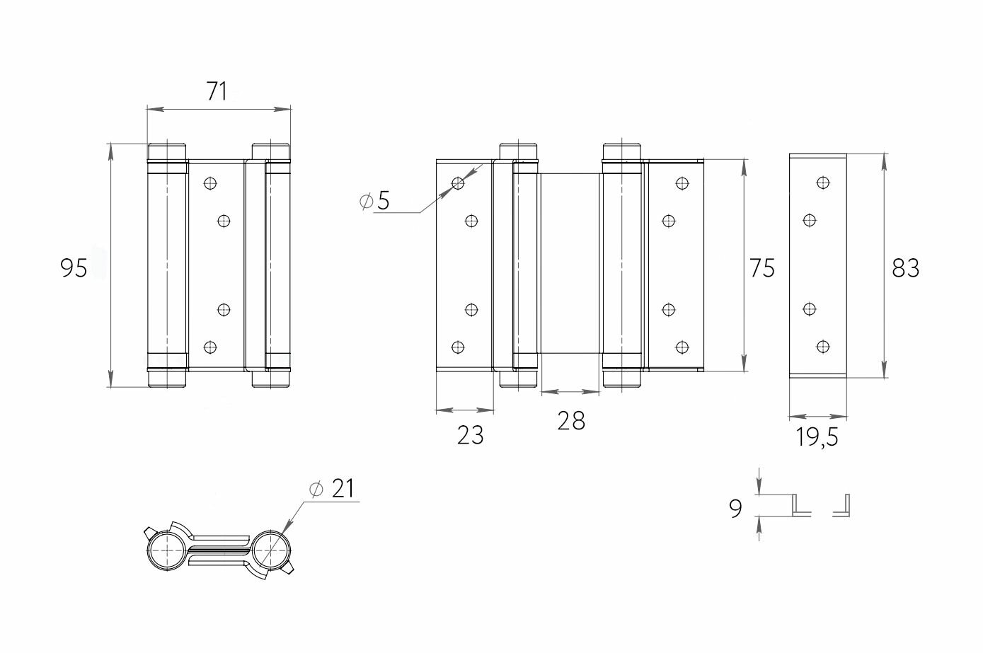 Дверная петля барная пружинная двусторонняя Fratelli Cattini (Aldeghi) 75-25 NI никель