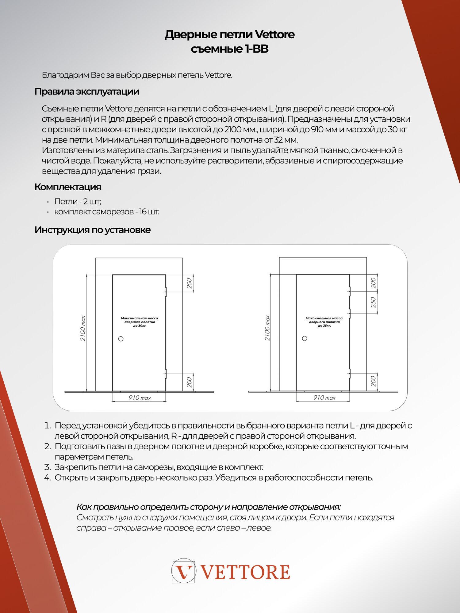 Сохранить20480 Петли дверные съемные VETTORE 100 75 2.5mm-1BB GR-R (правая) (Графит) интересное: