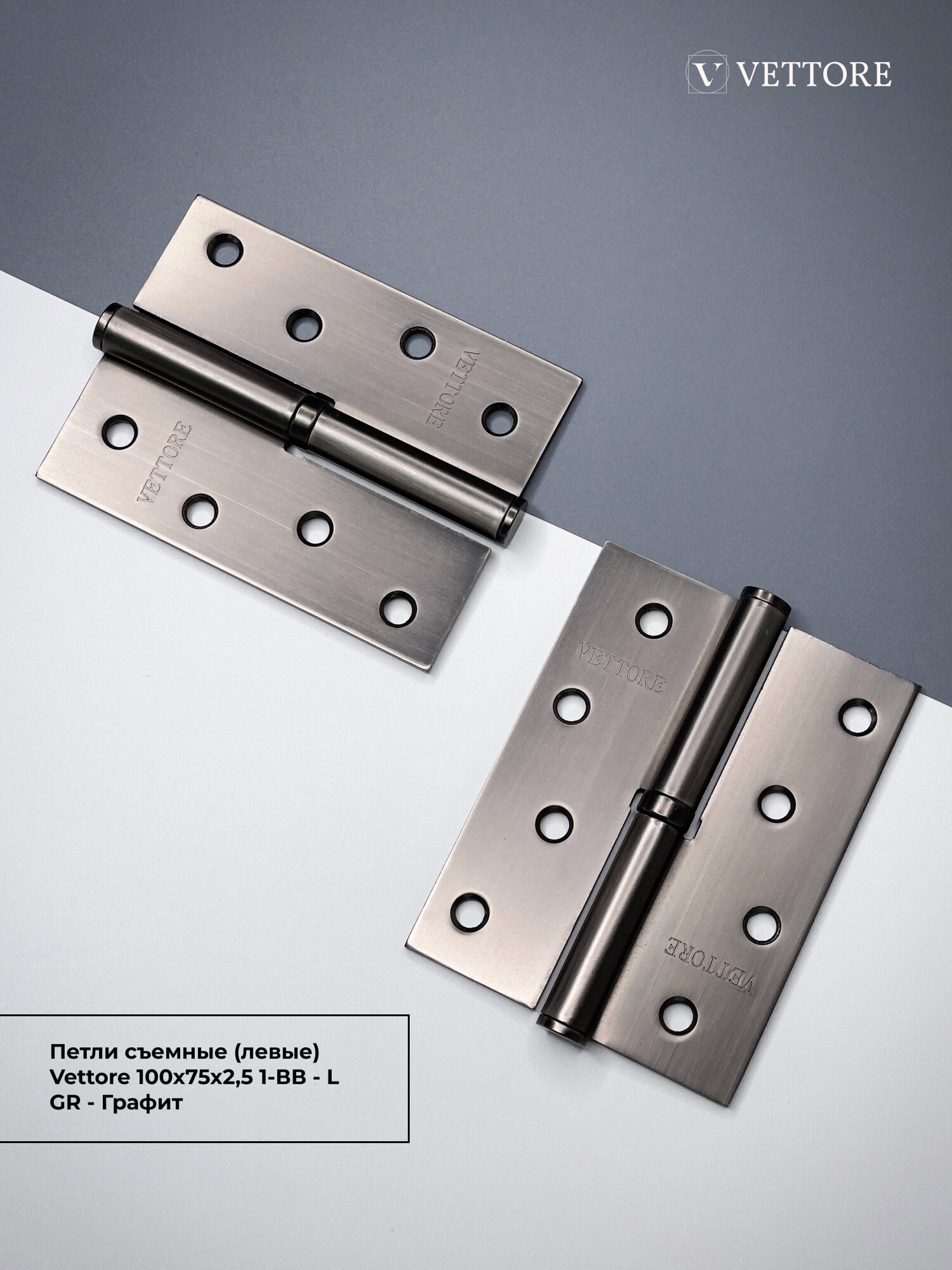 Купить 20481 Петли дверные съемные VETTORE 100 75 2.5mm-1BB GR-L (левая) (Графит), 2 штуки