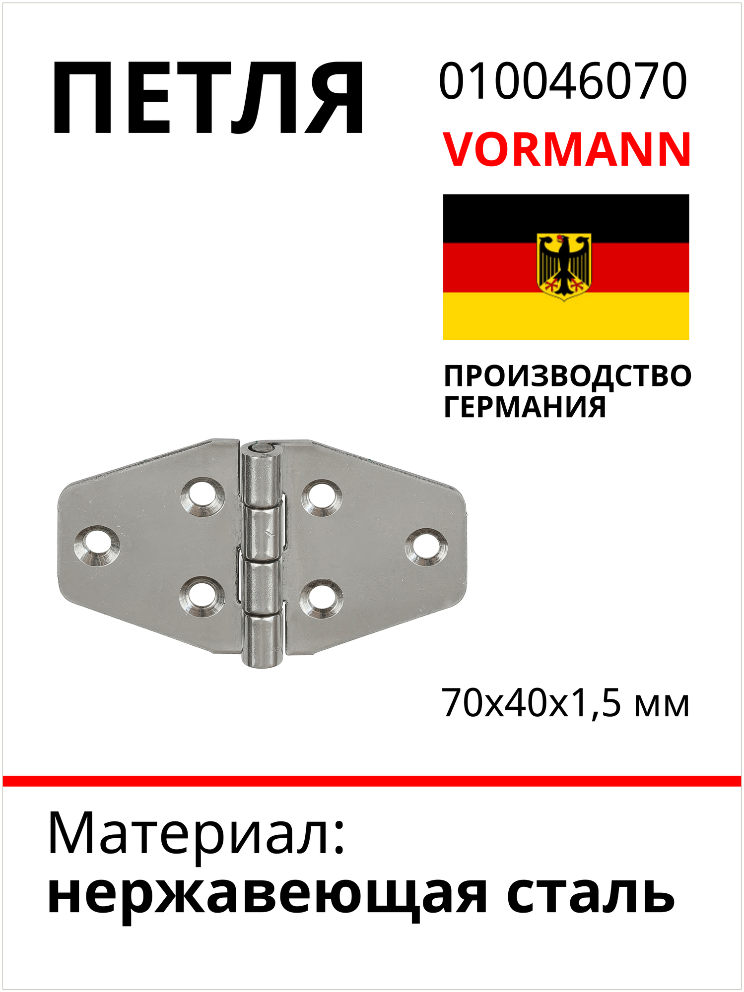 Купить Петля VORMANN 70х40х1,5 мм, нержавеющая сталь 010046070