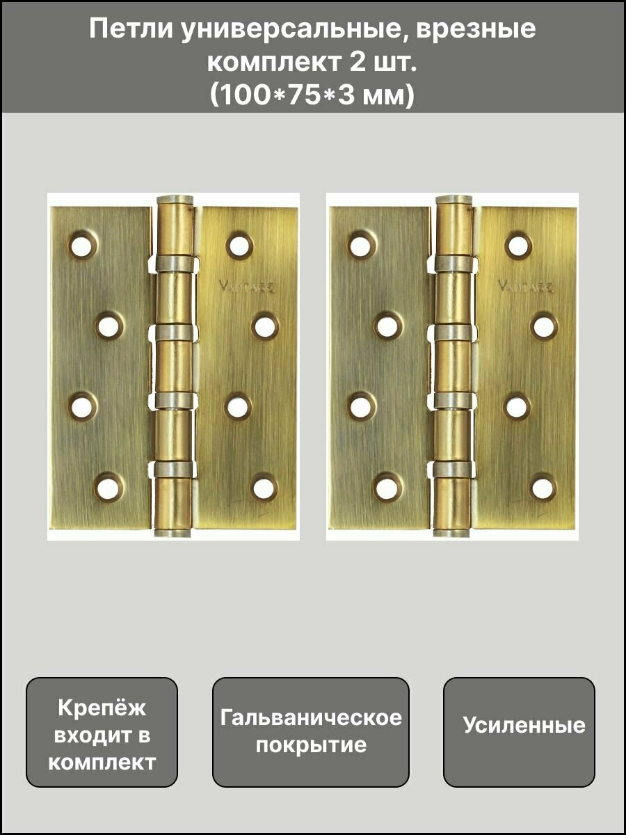 Петля дверная врезная универсальная усиленная В4 SB, цвет золото, 100х70х3, 2 шт
