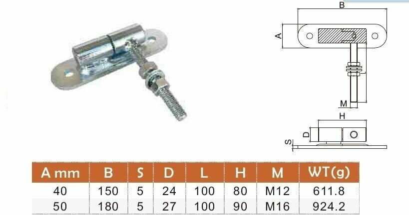 Петля для ворот и калитки регулируемая с пластиной крепления 180х50, М16. интересное: