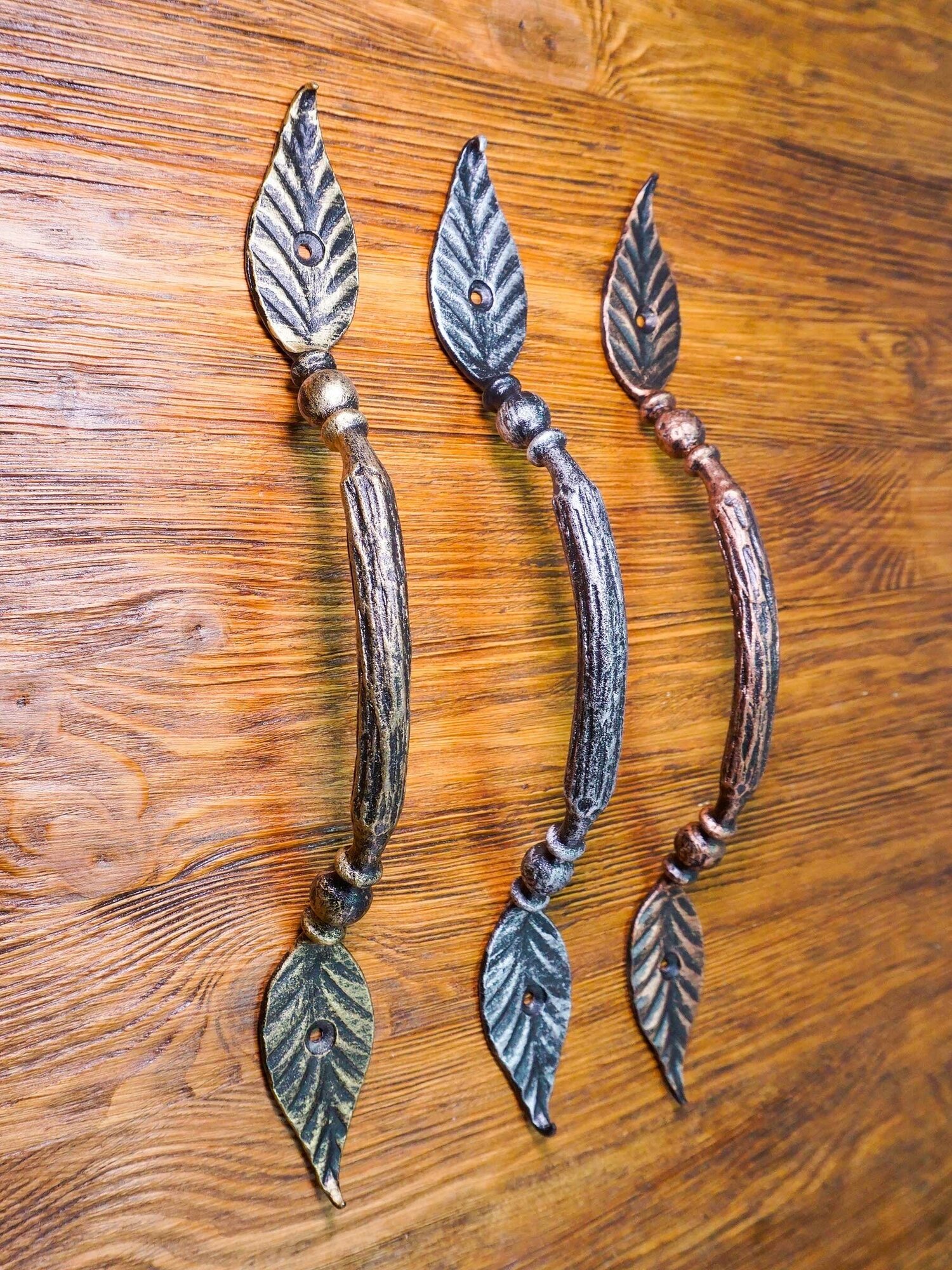 Ручка-скоба дверная кованая "Дуга" лист (золотой)/ ручка дверная межкомнатная/ для входной двери/ ручка металлическая/ ручка на калитку/