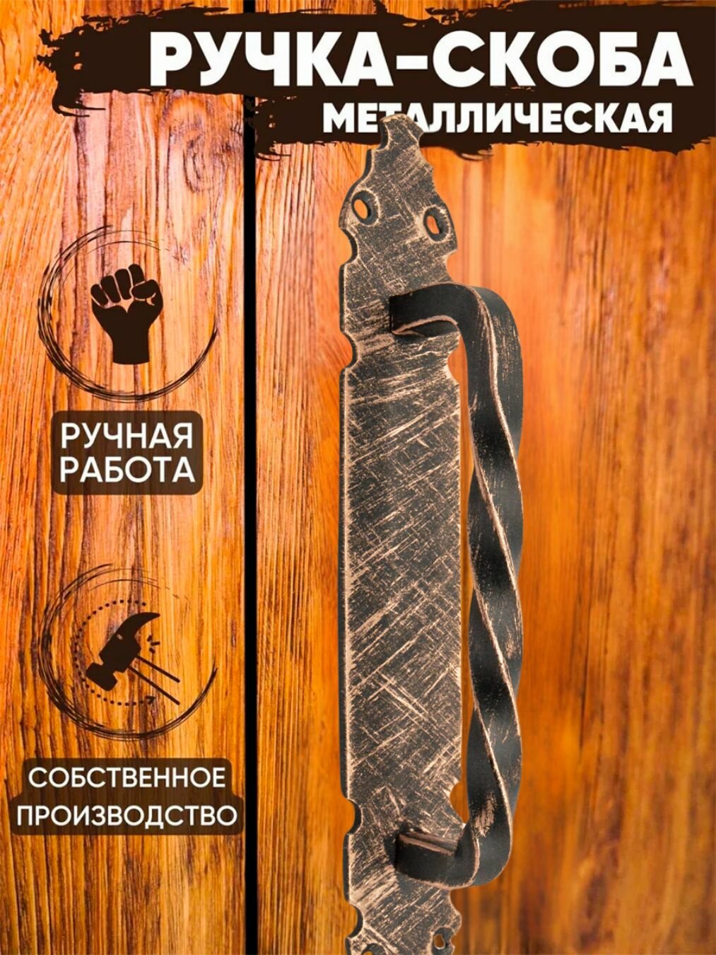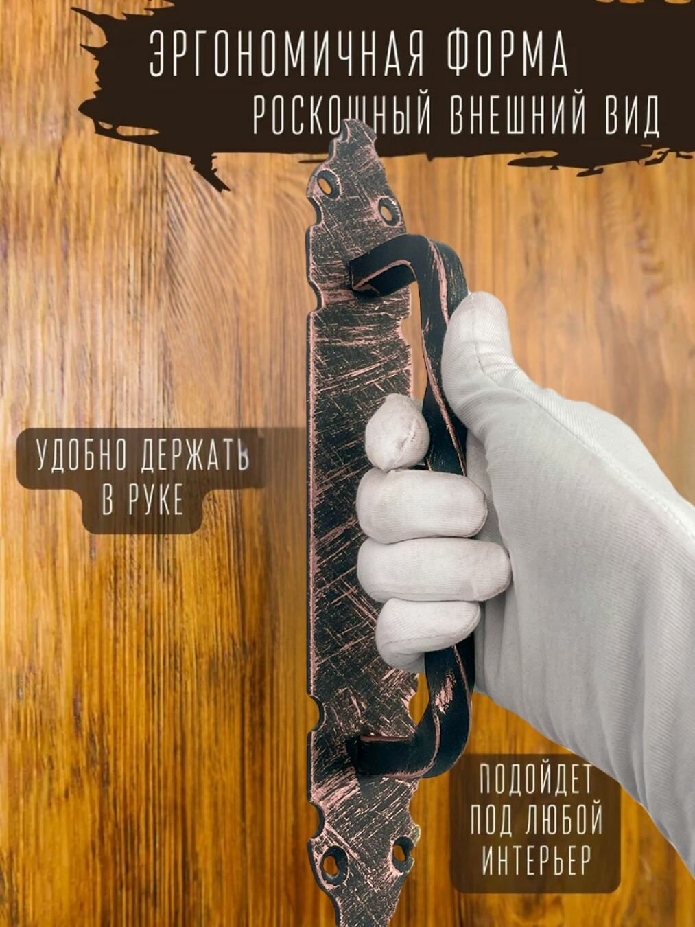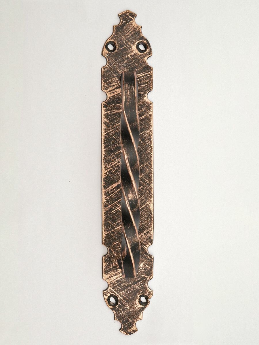 Ручка-скоба дверная кованая "Витая на планке" цвет: медный/межосевое расстояние: 170 мм/металлическая интересное: