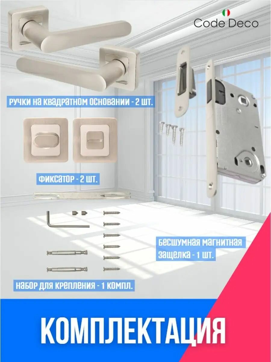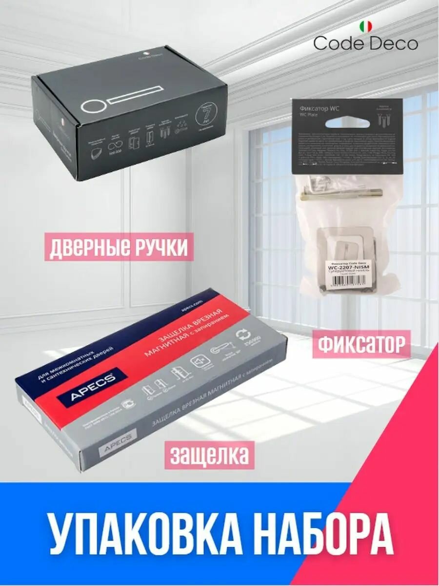 Купить Готовый комплект 3в1 ручка дверная межкомнатная CODE DECO 22114 Никель матовый + защелка с фиксацией + WC-фиксатор