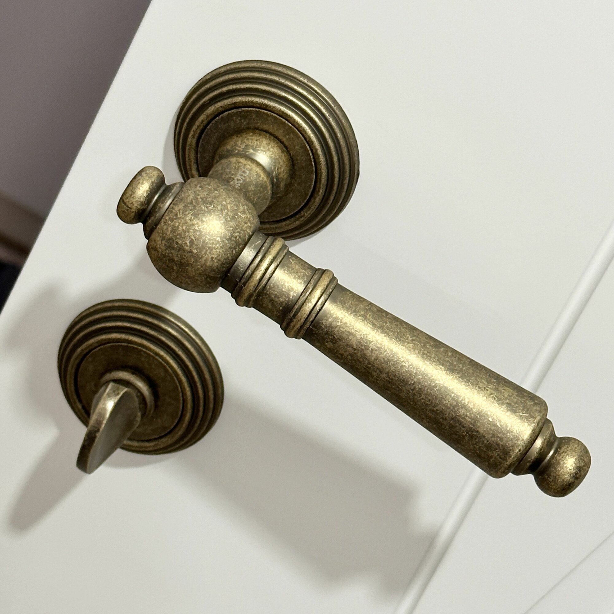 Ручка дверная межкомнатная медь с защелкой и заверткой без ключей комплект