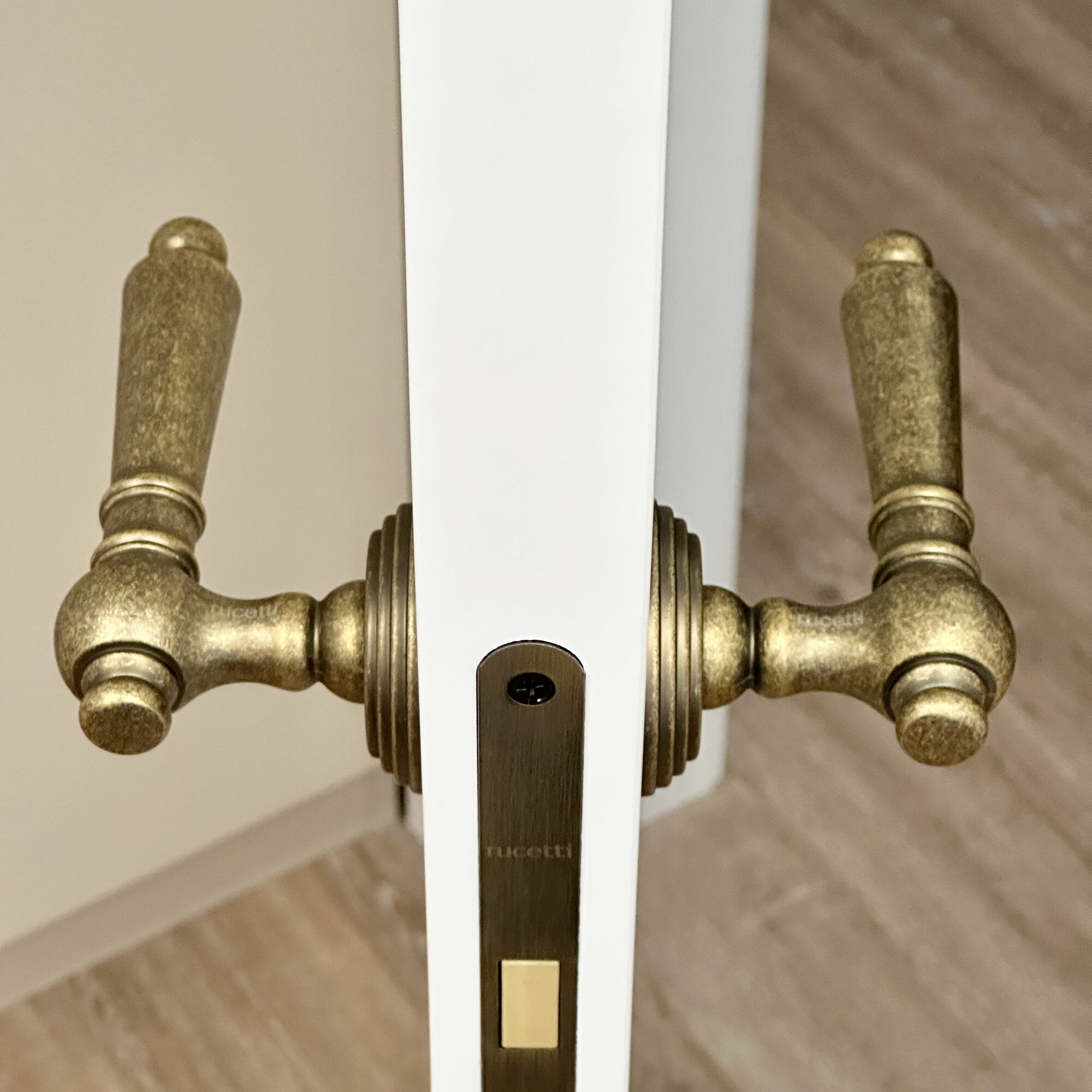 Дверные ручки Rucetti (Ручетти) RAP-CLASSIC-L 8 OMB + Межкомнатный замок RP1895 AB + Завертка сантехническая RAP-CLASSIC-L WC OMB / Межкомнатные дверные ручки с замком и фиксатором