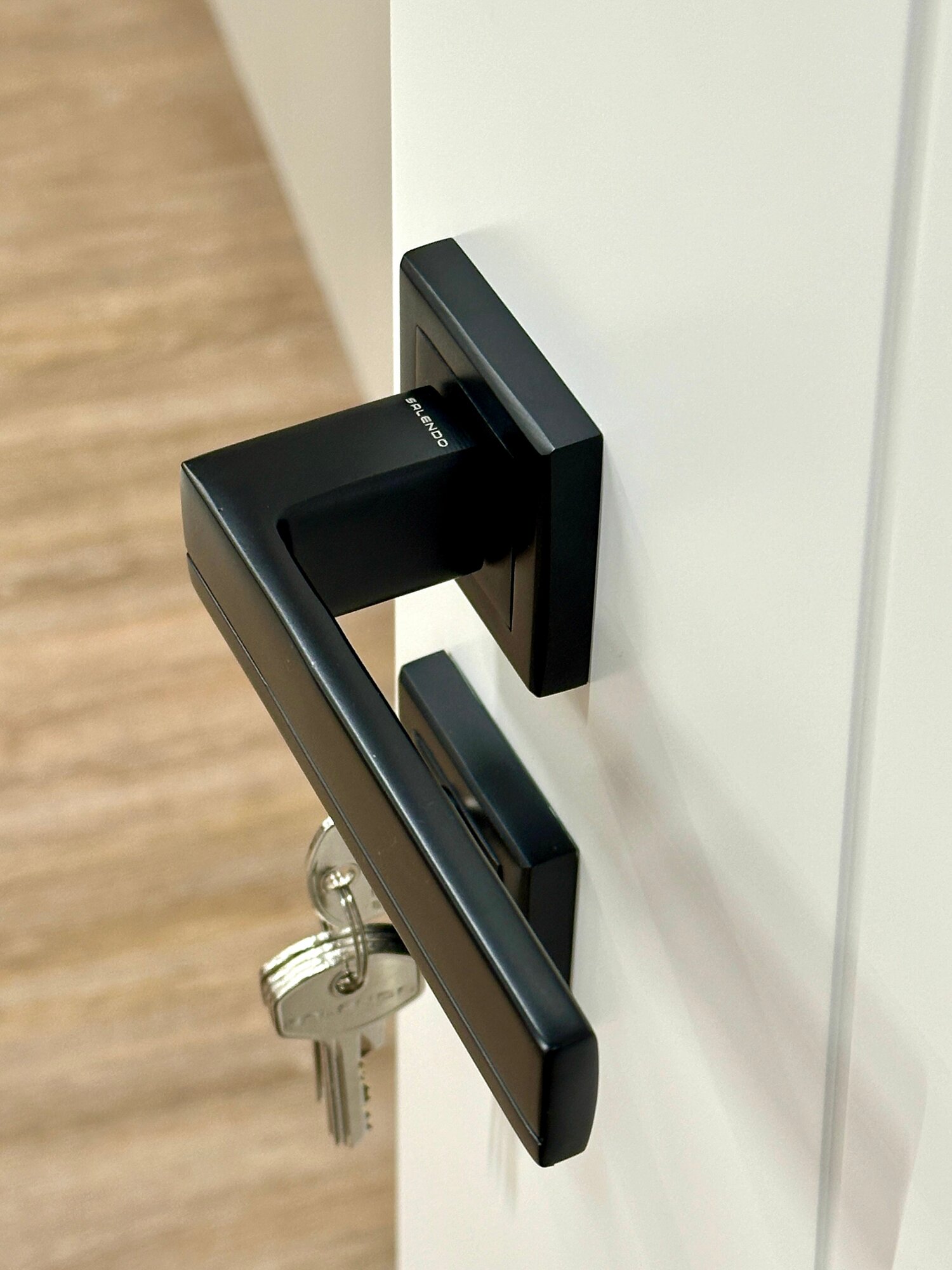 Межкомнатная дверная ручка Salendo SL-05-S BL + Магнитный замок M1885-ET BL + Накладки на личинку замка SL-ET-S BL + Личинка для замка ключ/ключ 60K/K-BL + Дверные петли SL 100X70X2,5-4BB BL _ 2 шт.